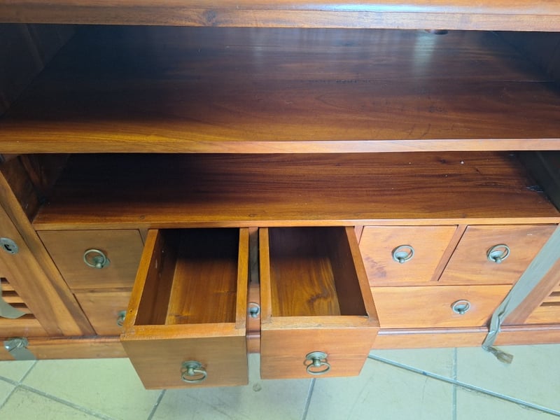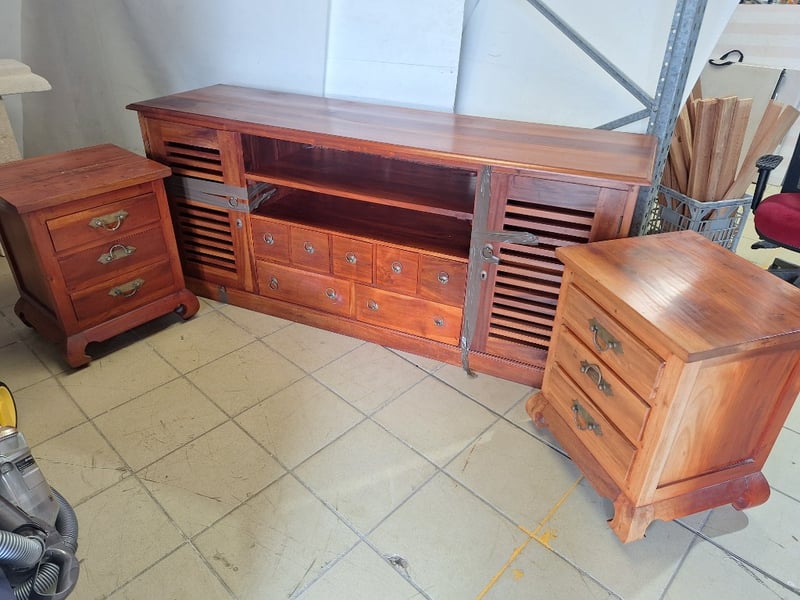 Entertainment Unit With Drawers & A Pair Of Bedside Tables, Timber Style, Brown Finish