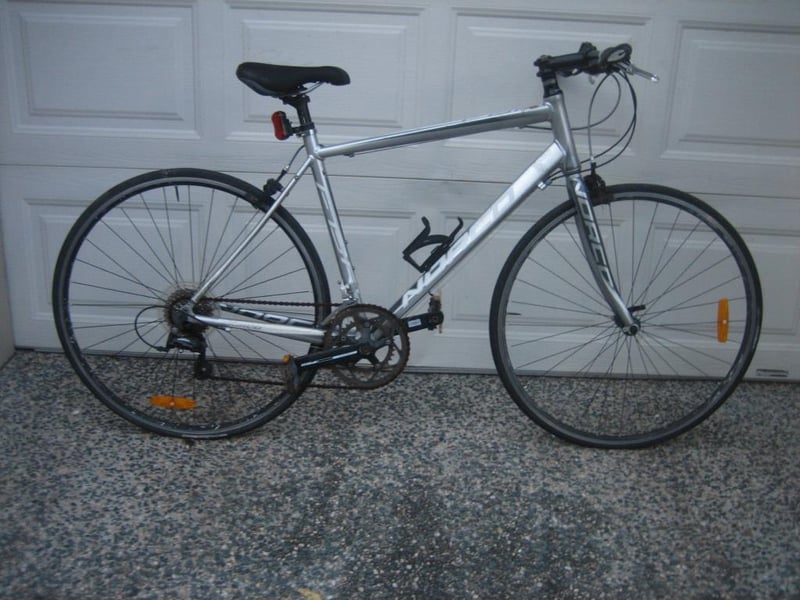 Hybrid Road Bike, Norco Brand, Lightweight alloy frame, Size L, silver/white, 28" quick release alloy rims, Shimano gears.