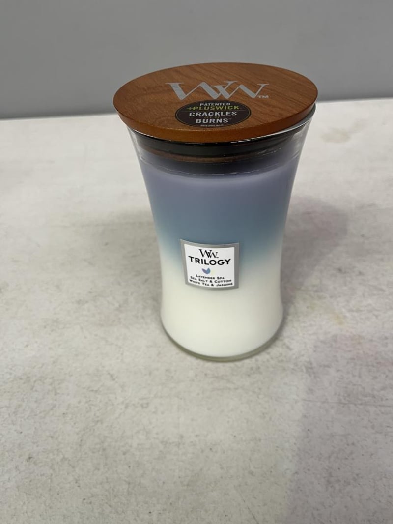 Woodwick Calming Retreat Lavender Spa (Sea Salt & Cotton/White Tea & Jasmine)Trilogy Jar Candle Large - RETAIL RETURN UNUSED PRISTINE CONDITION