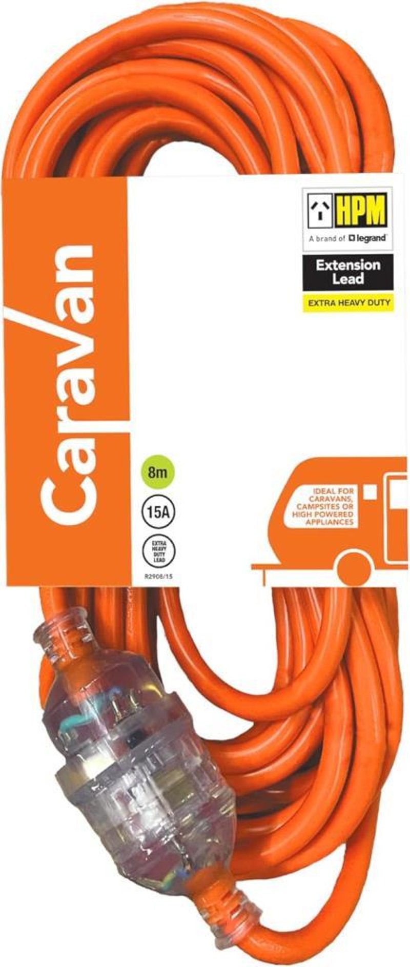HPM 15A Extra Heavy Duty Caravan Extension Lead 8m - Orange - REFURBISHED WORKING AS NEW CONDITION