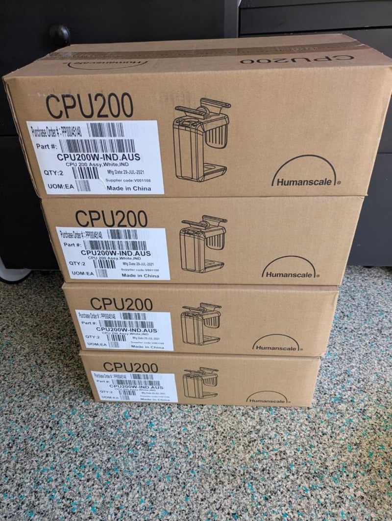 Humanscale CPU200 Under Desk Computer CPU Holder Mount White/Silver QTY:2 In Box
