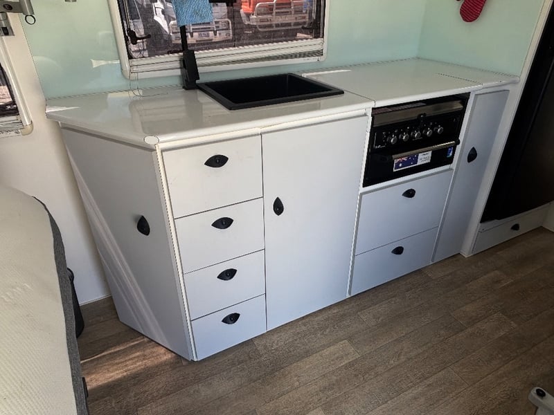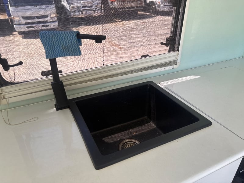 - Stainless steel sink & modern bench finishes