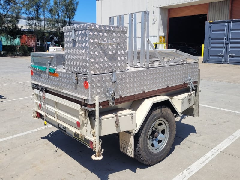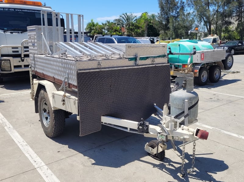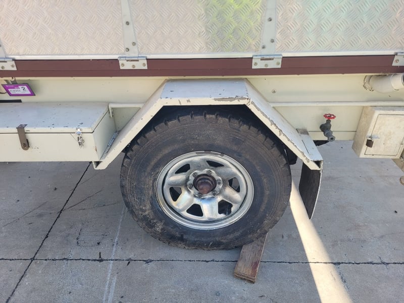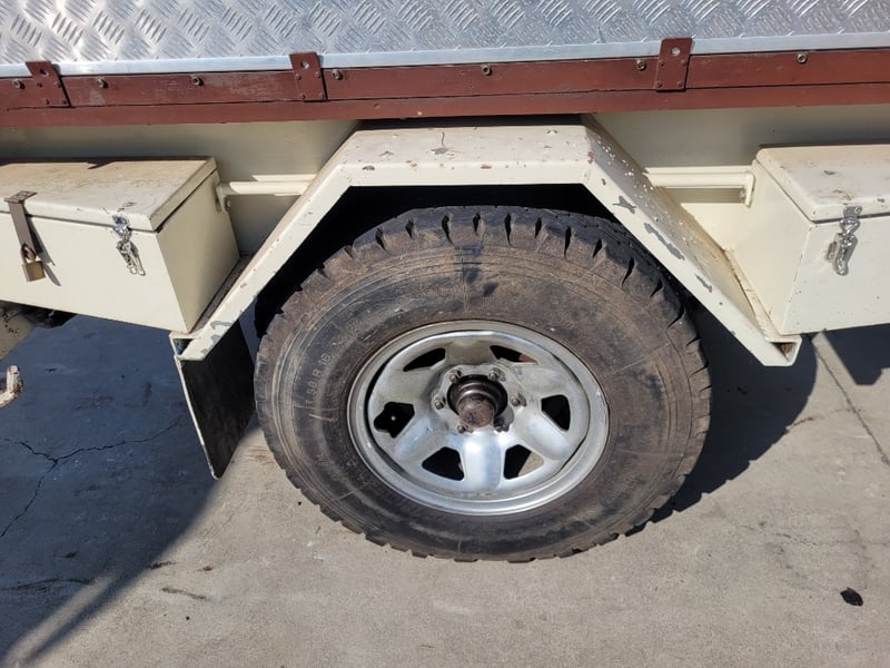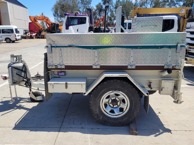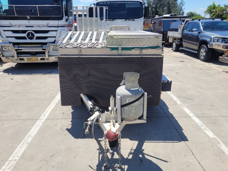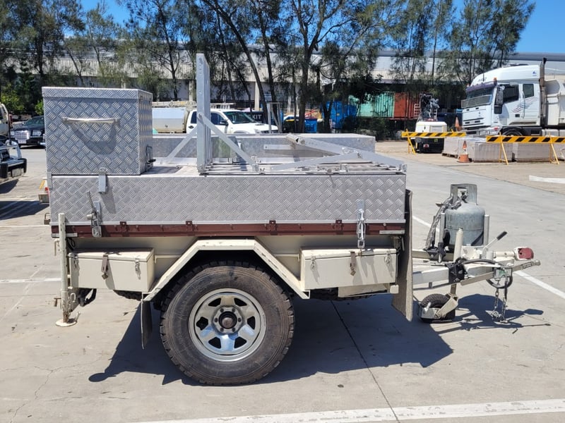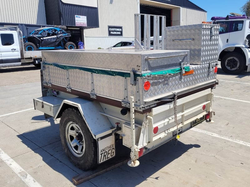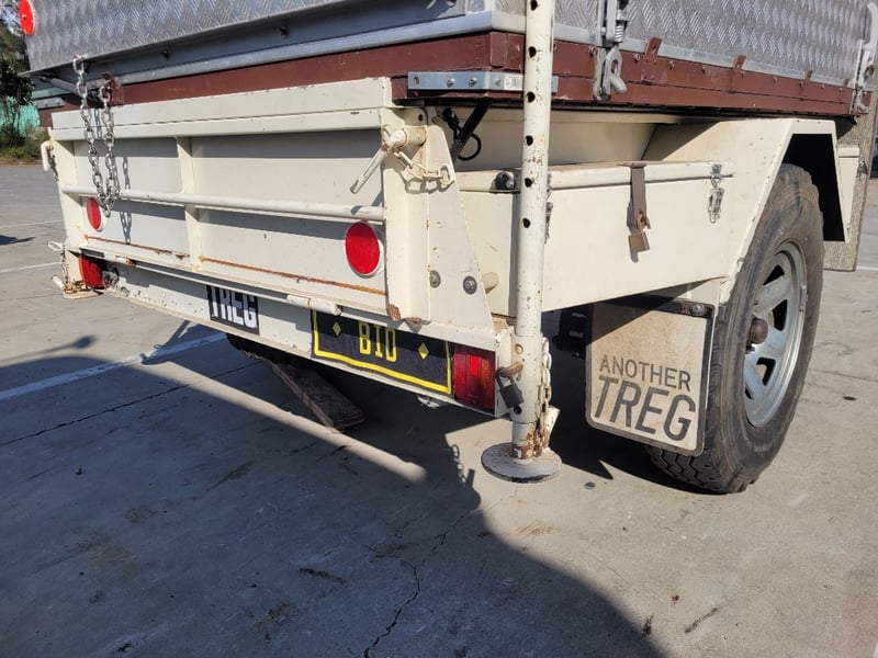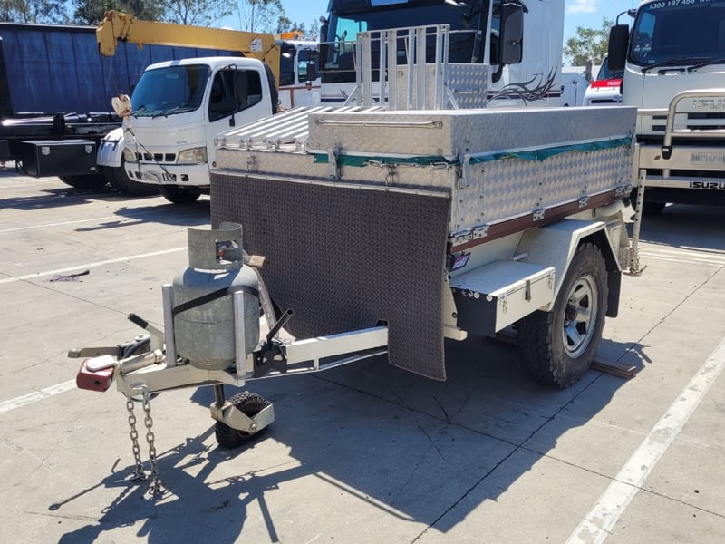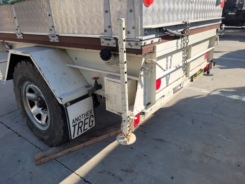 Description: Homemade camper trailer, has been kept out of the elements and is still in great condition, canvas's, poles, gas lines still good condition, spare tyre, Jockey wheel, 7 pin large round lead, lockable, everything is ready to take camping.
