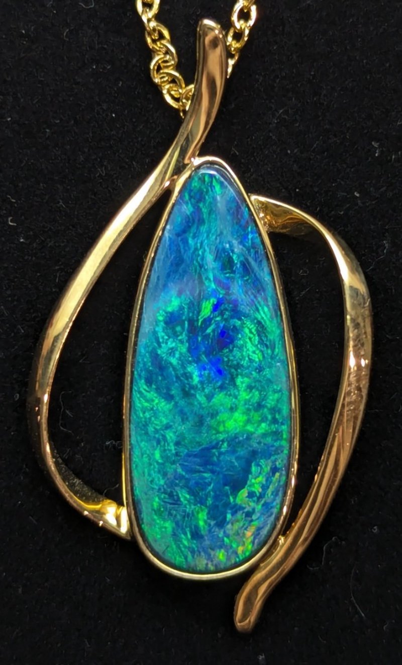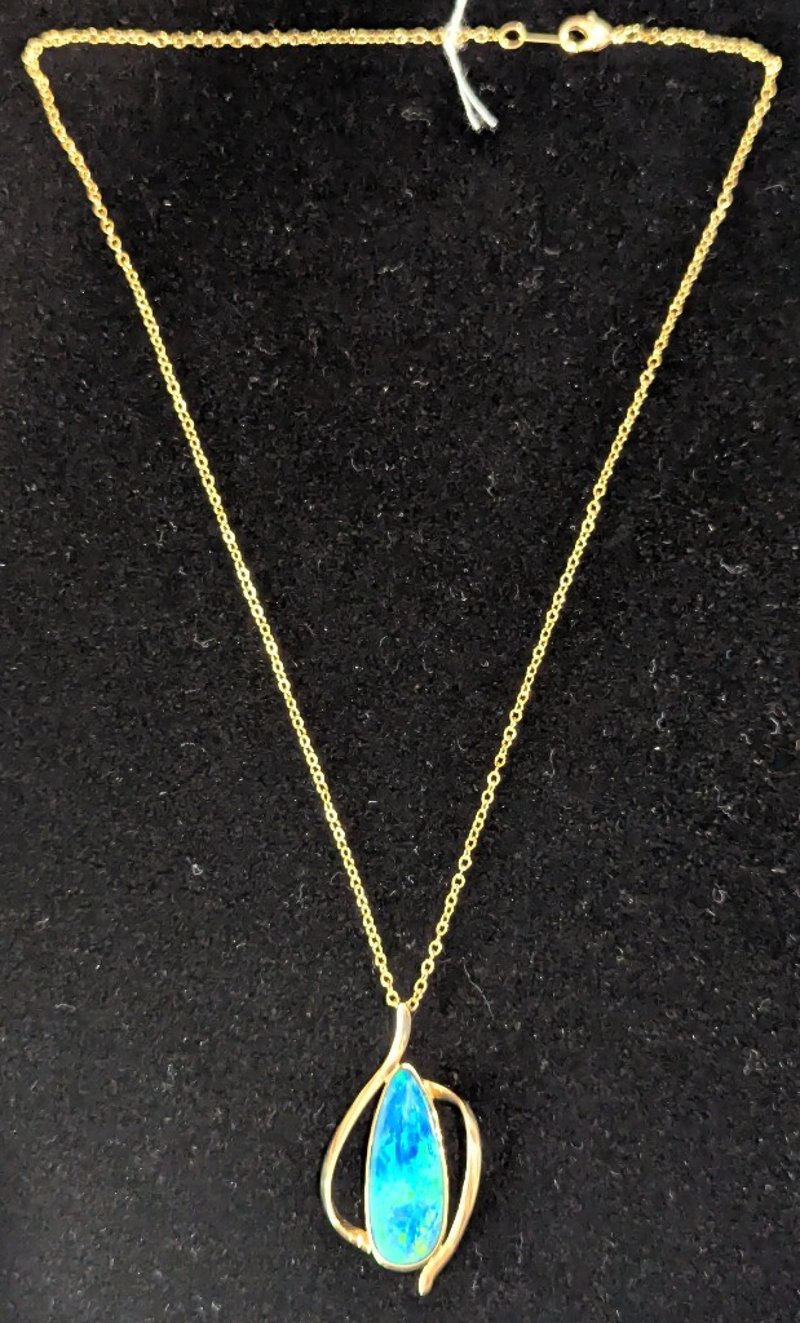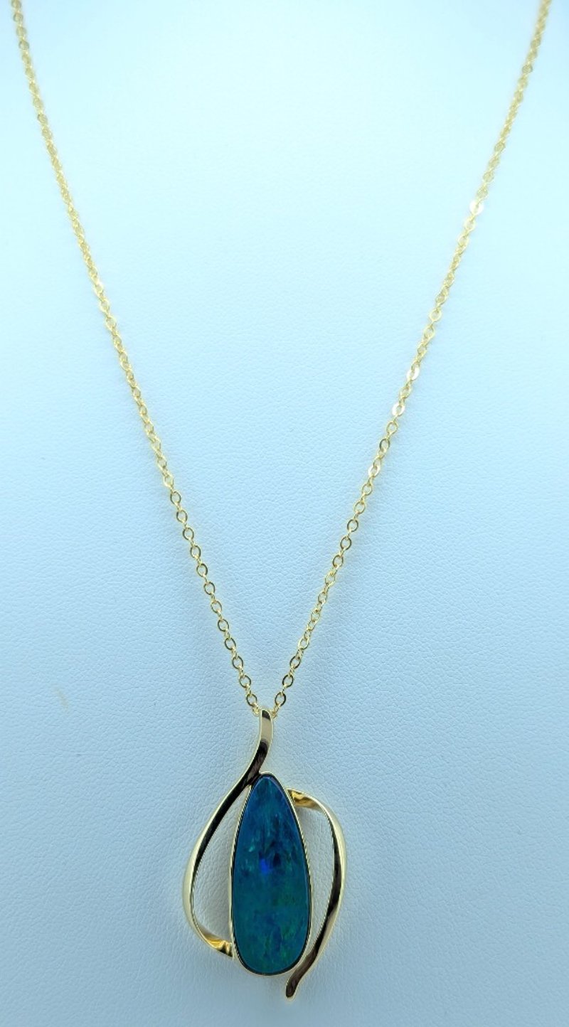 14K YELLOW GOLD OPAL PENDANT NECKLACE Pendant Features 6.79Ct Opal Doublet, Pendant Size Approx: 4Cm X 2.4Cm, Yellow Gold Plated Chain, Chain Length Approx: 40Cm (Unclasped) Total Item Weight: 5.94g Markings: Stamped: 14K / 585 Condition: Good - Refer To Images 586318+16