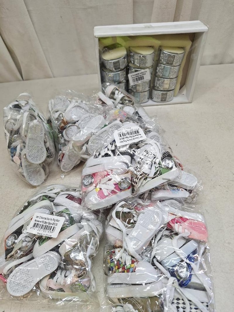 12x woman butterfly silver-tone carved bangle cuff watches, 84x sneaker key ring watch