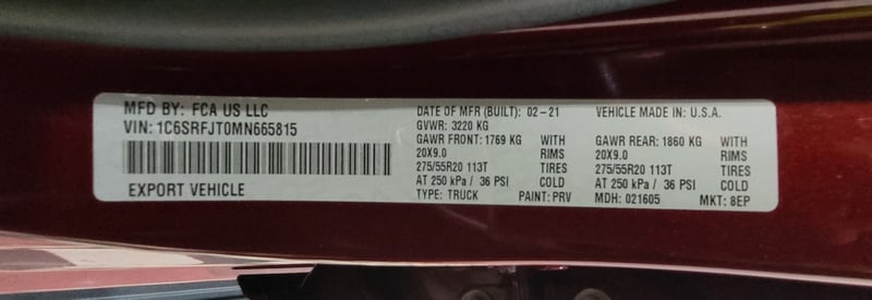 VIN: 1C6SRFJT0MN665815