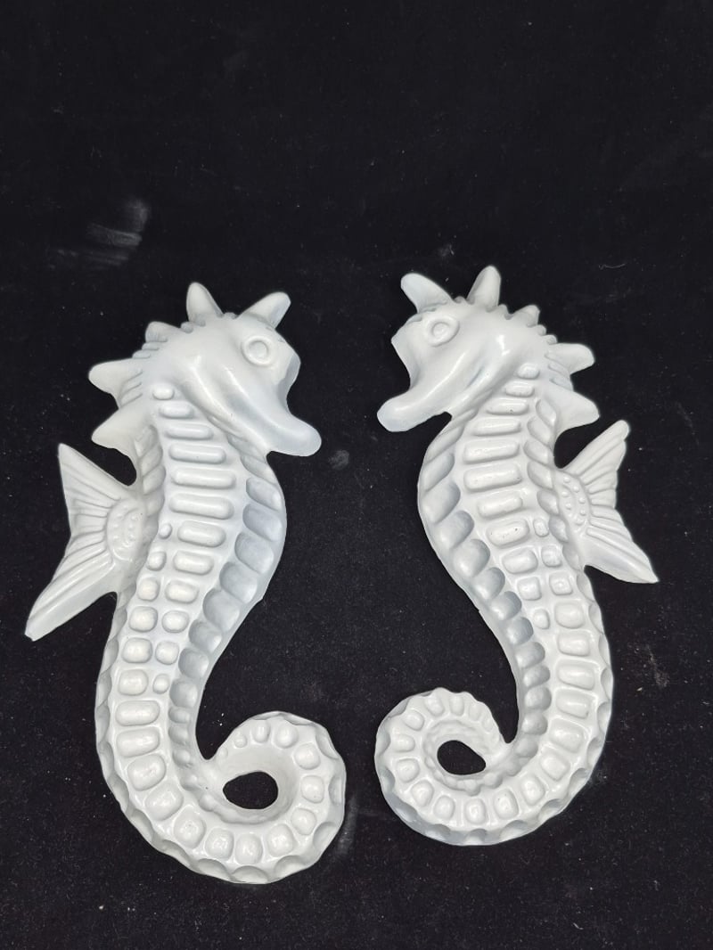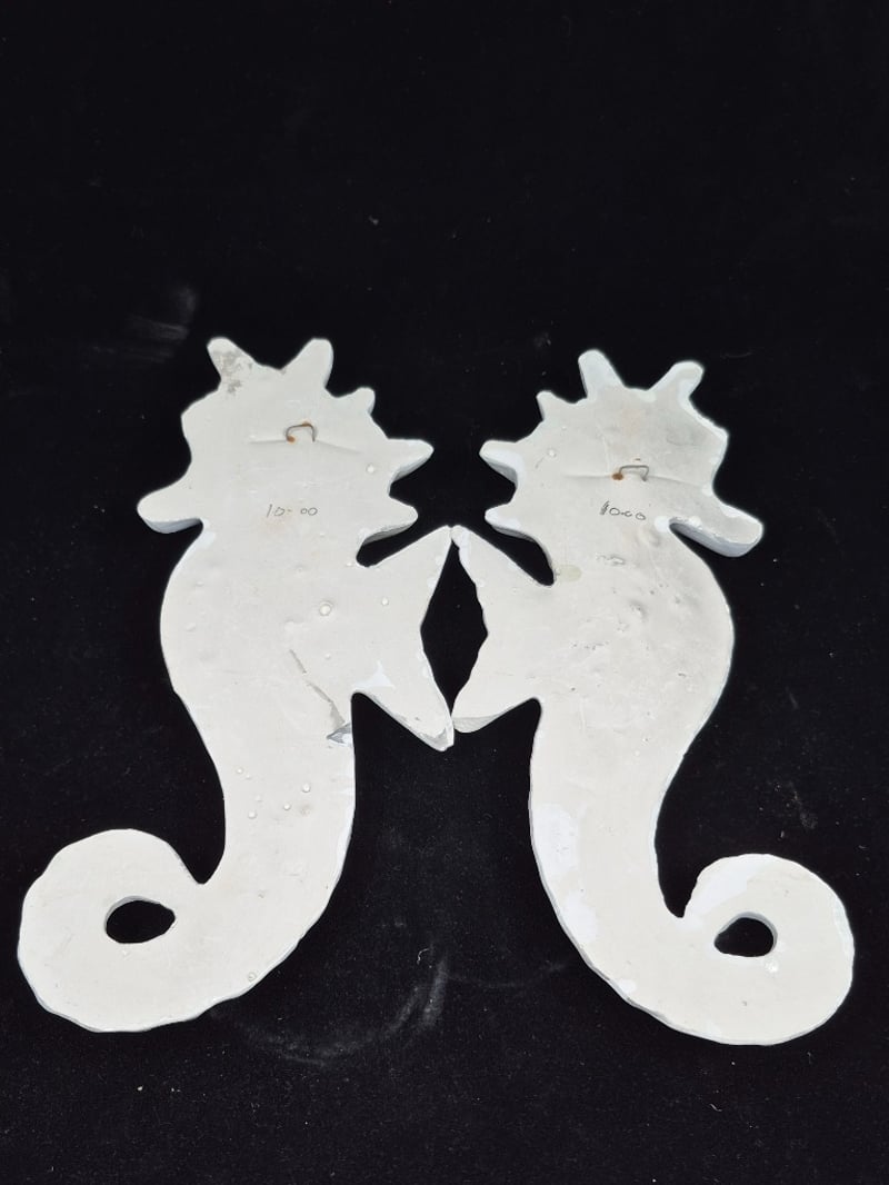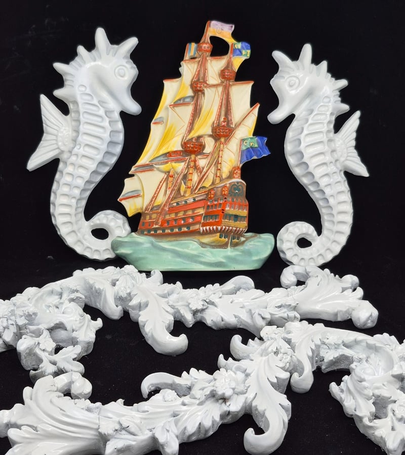 DECORATIVE WALL HANGING CERAMIC SHIP, SEAHORSE AND ORNAMENTAL SCROLLWORK