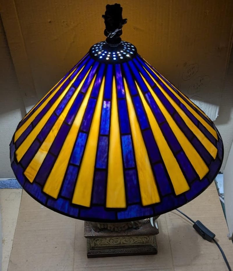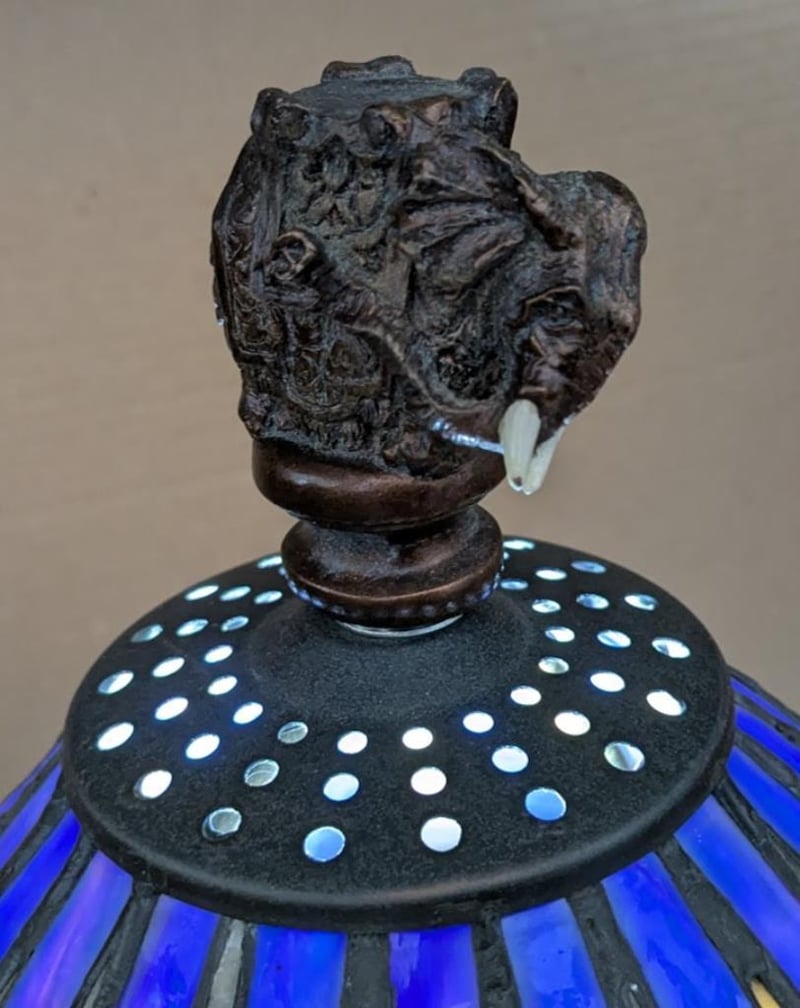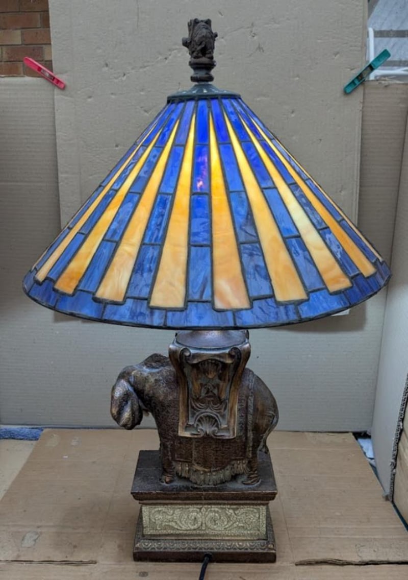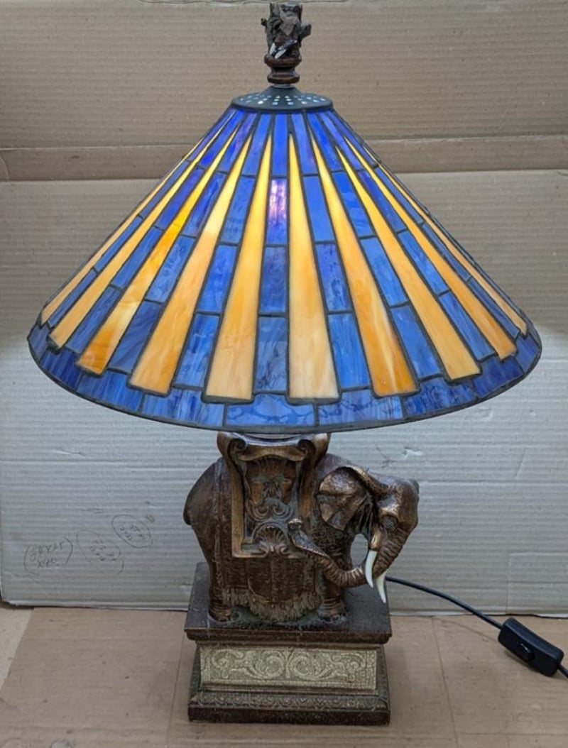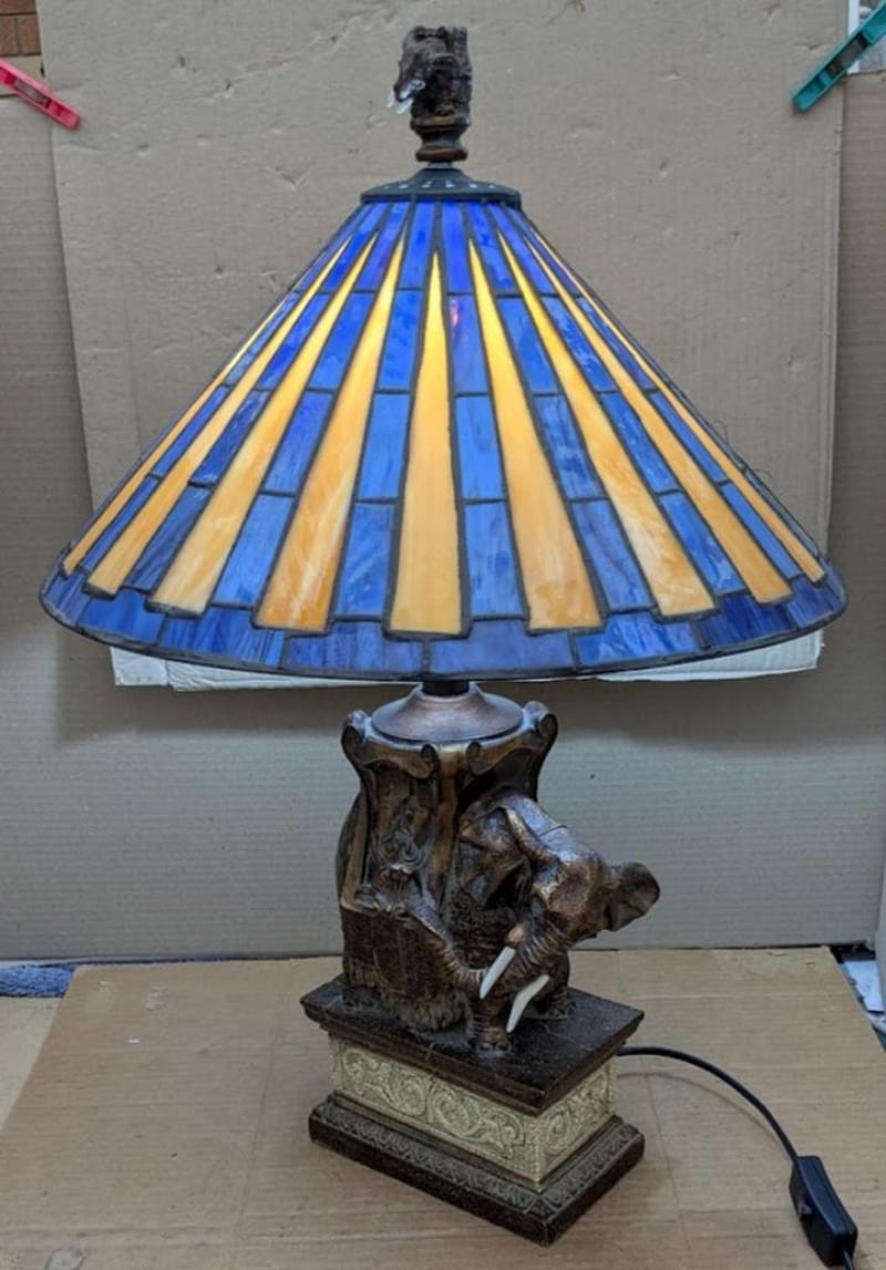 VINTAGE STAINED GLASS LEADLIGHT LAMP, BRONZE COLOR ELEPHANT