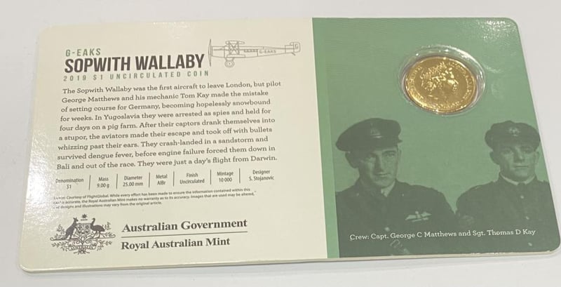 2019 AUSTRALIA SOPWITH WALLABY UNCIRCULATED COIN SCARCE 294142+18