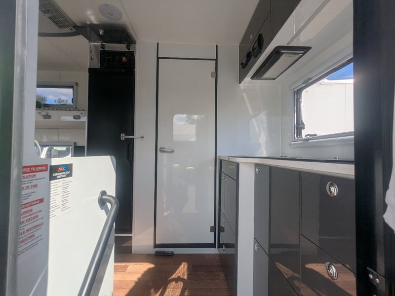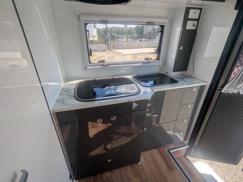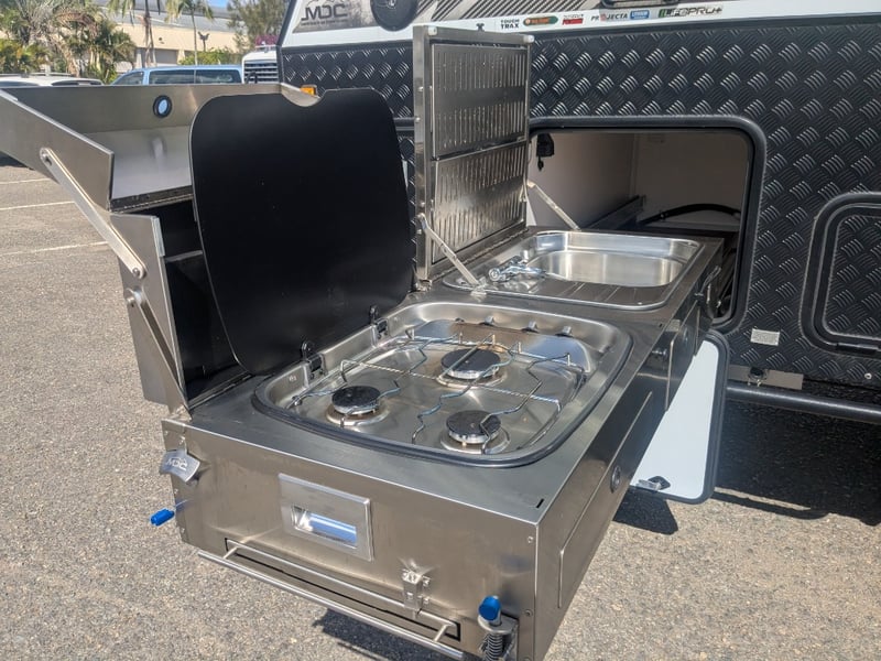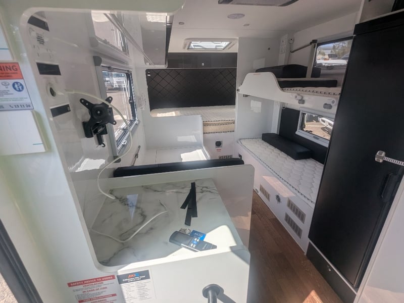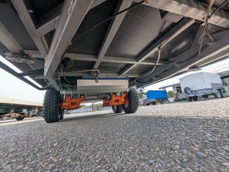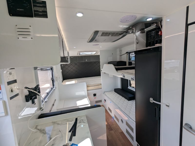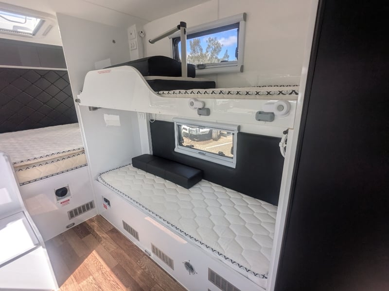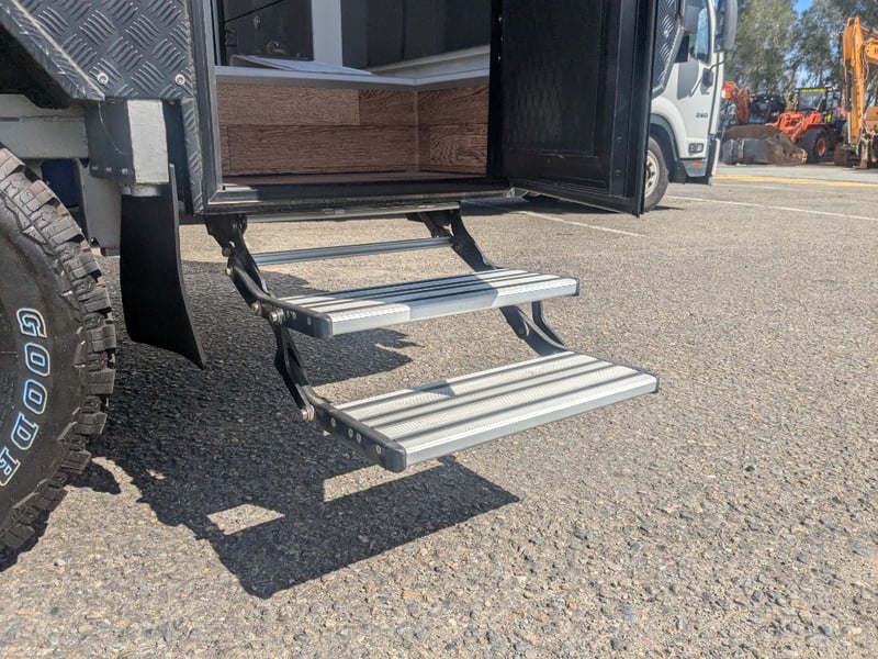 Description/ extras: Dual Gas Storage, Shower Toilet, Speakers, External Light Bars, 2 Spare Tyres , Pull out External Kitchen (Sink, StoveTop,), Pull out Steps, 1 Double Bed, 2 Single Beds, AirCon, Fridge, Overhead Storage,