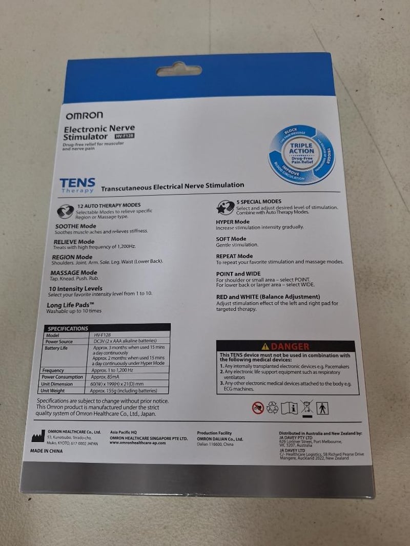 OMRON electronic nerve stimulator,HV-F128, TENS therapy, RRP$268.95, NEW factory sealed in box