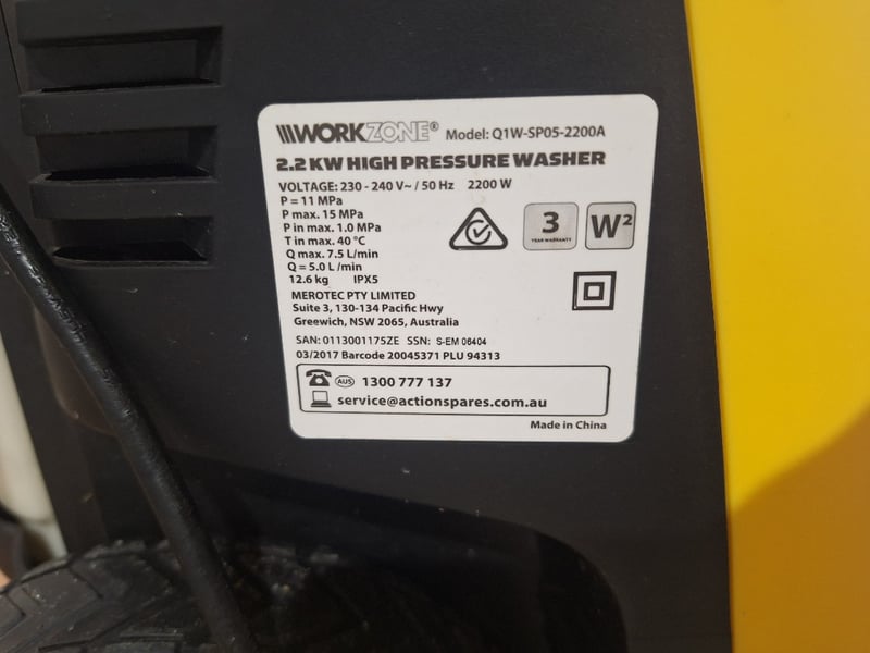 Workzone High-pressure Washer, Black & Yellow FinishDimensions H:88cm W:31cm D:33cm