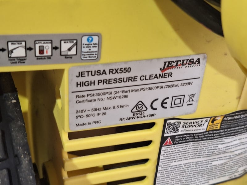Jet-USA RX550 High Pressure Cleaner, Black & Yellow FinishDimensions H:93cm W:31cm D:30cm