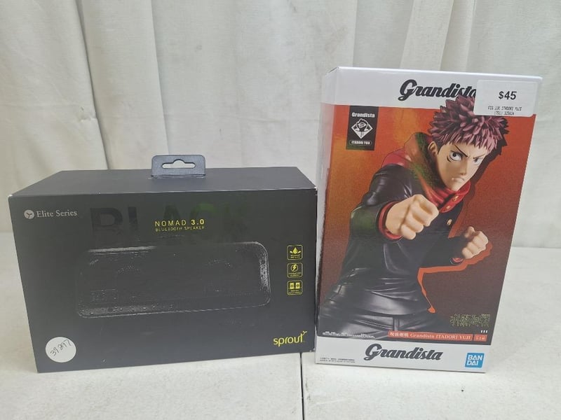 1x ELITE SERIES, nomad 3.0 bluetooth speaker, waterproof, factory sealed in box, 1x GRANDISTA itadori yuji figure, RRP $45, factory sealed in box