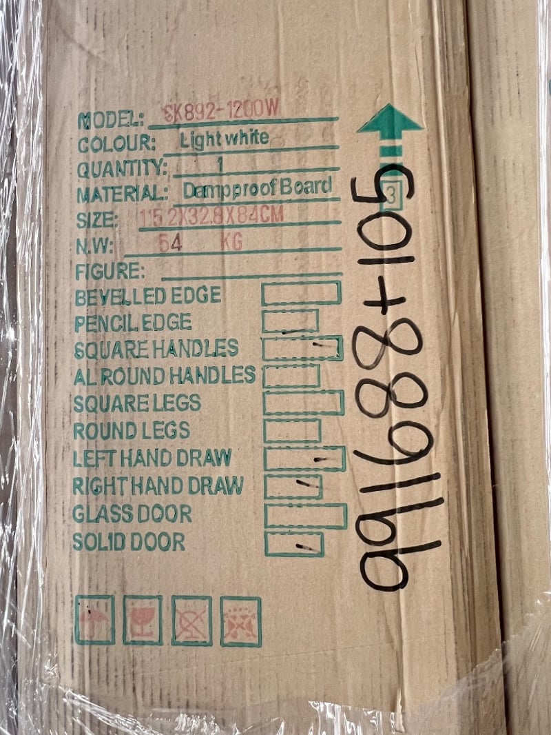 Vanity, sunny group, SK892-1200W, whiteDimensions approx; 115.2 x 32.8 x 84 cmQuantity; 4 to pallet, sold as lot