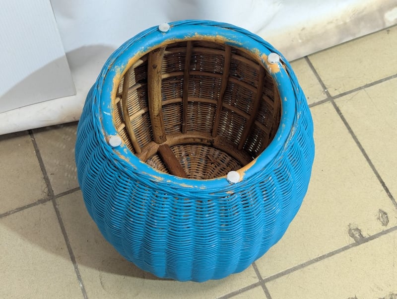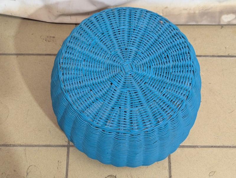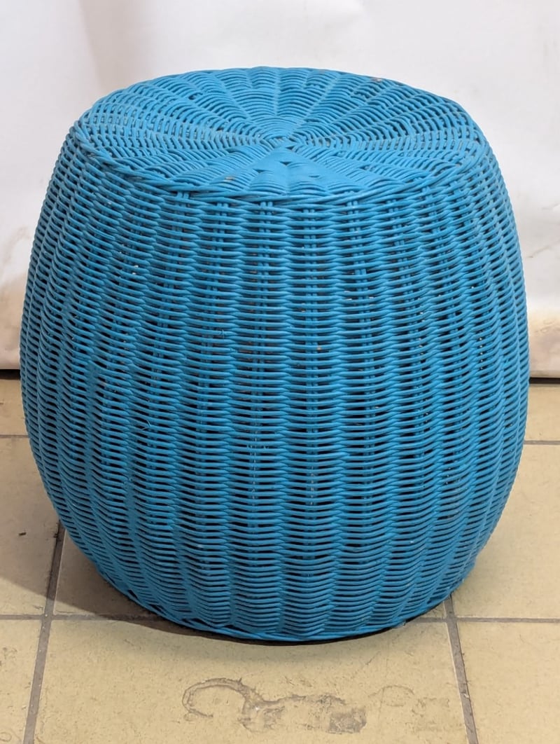 Outdoor stool, rattan style, blue paint exterior Dimensions: 37cm H x 39cm W