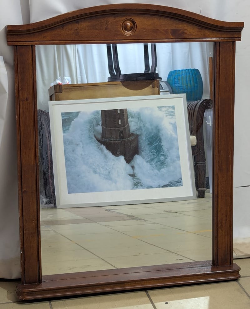 Wall mirror, timber frame, natural finish, single rear hanging loop