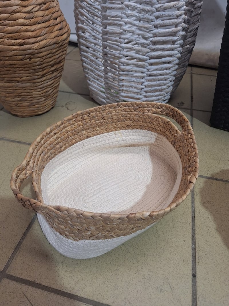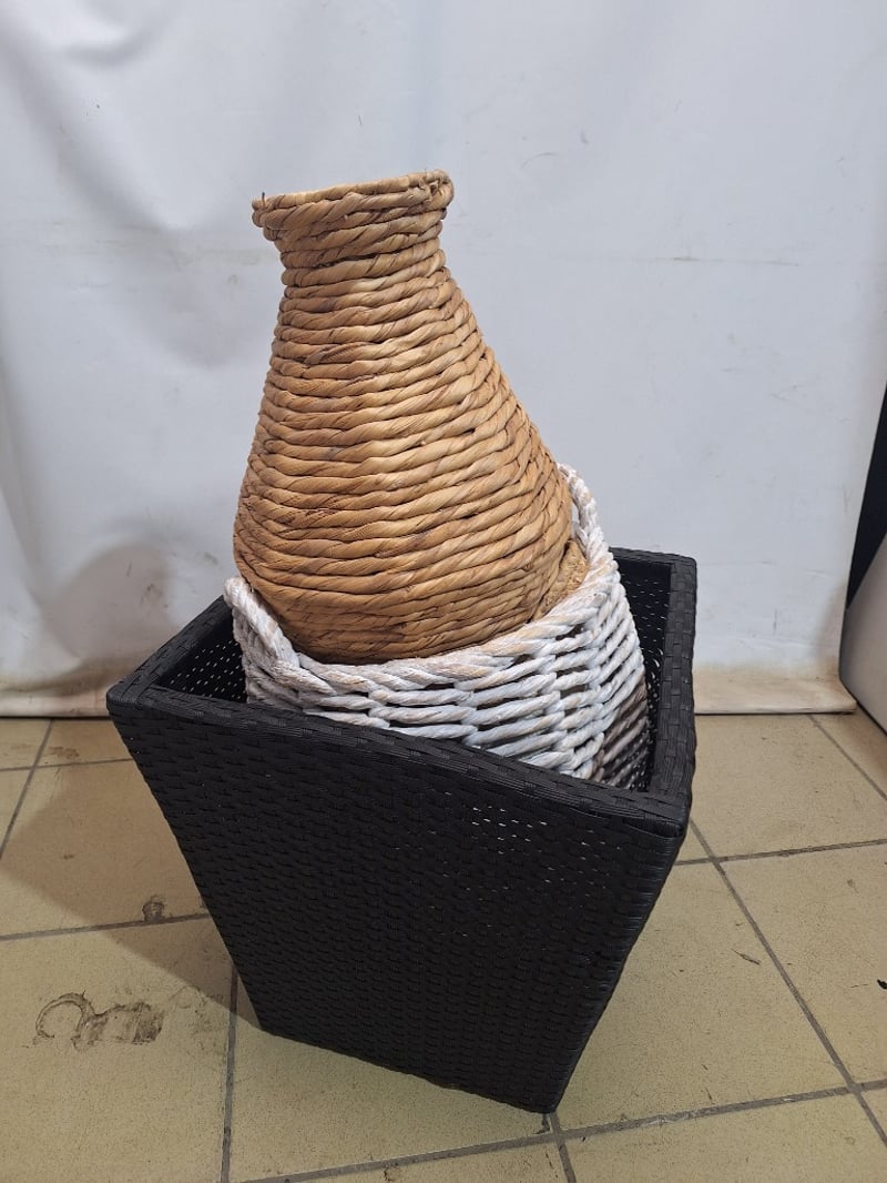 Assorted Baskets & A Vase, Rattan Style