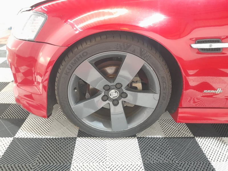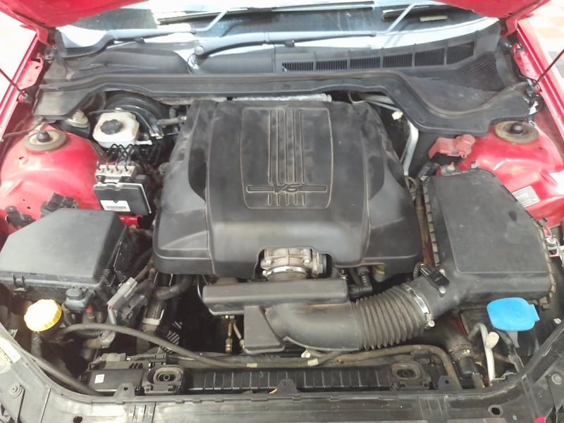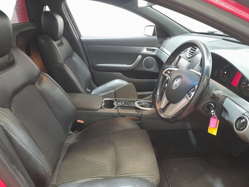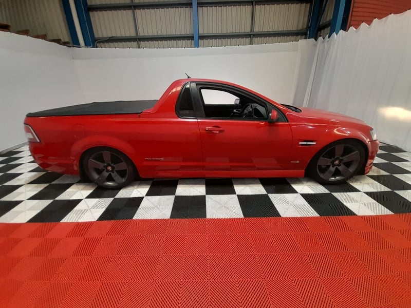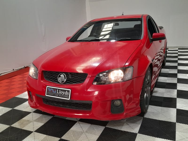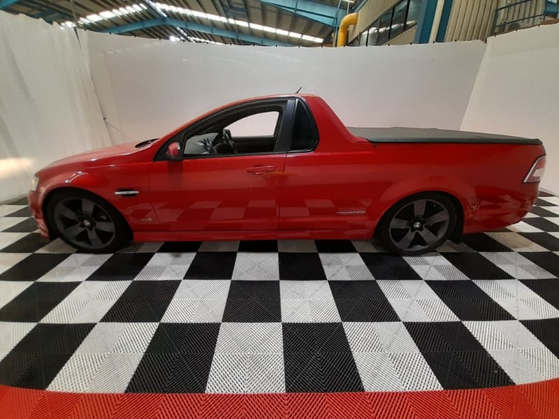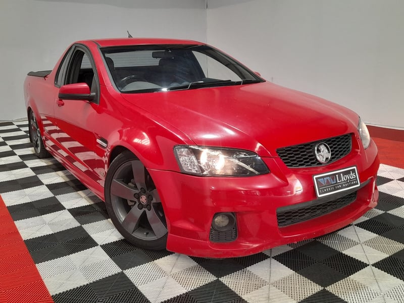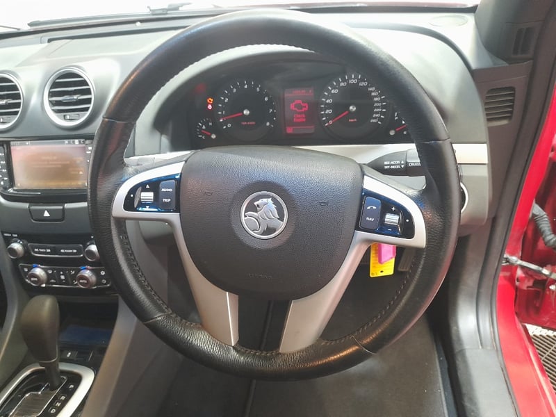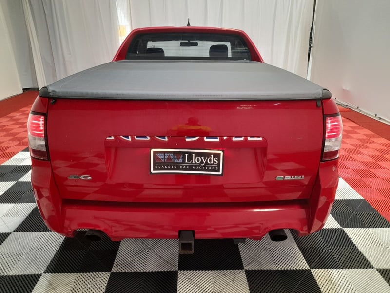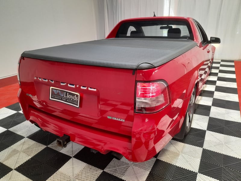 Striking red 2008 Holden SV6 single cab utility featuring a potent v6 engine paired with a 6-speed automatic transmission. This ute showcases distinctive aggressive styling with modern black alloy wheels and sporty front end design. The spacious cab presents charcoal and grey striped upholstery with supportive bucket seats, complemented by a comprehensive dash layout including central infotainment system with radio functionality. The well-appointed interior features climate controls, steering wheel-mounted audio controls, and practical storage solutions. The substantial cargo tray includes tonneau cover and tie-down points. Engine bay reveals immaculate presentation with properly arranged components. Odometer reads 119,866 kilometres. Right-hand drive configuration. Vehicle presented in auction condition ready for enthusiast inspection. Minor scuffing to tonneau cover, light scratches to interior trim panels, minor wear to driver seat bolster, check engine light, faint stability control warning on instrument cluster display. Inspection recommended.