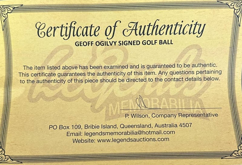 A Golf Ball In Display Case Personally Signed By Geoff Ogilvy. Geoff Ogilvy Is An Australian Professional Golfer. Ogilvy Won The 2006 U.S. Open And Has Also Won Three World Golf Championships. The Item Is Accompanied By A Certificate Of Authenticity.