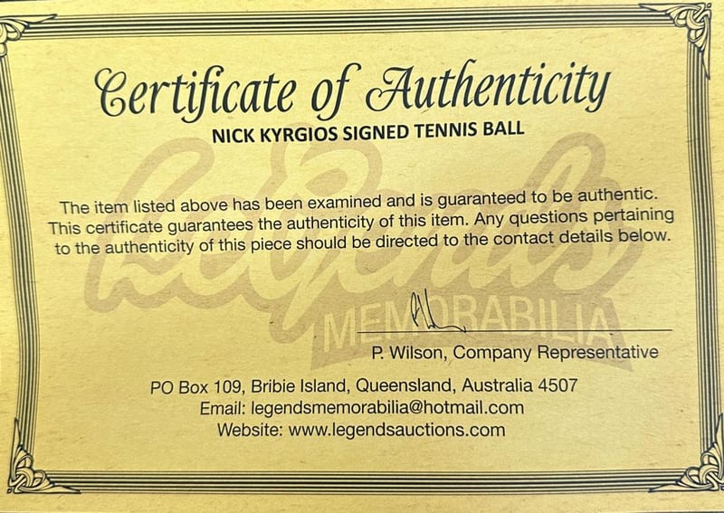 A Slazenger Wimbldon Tennis Ball Personally Signed By Nick Kyrgios. Nicholas Kyrgios, Nicknamed "Kygs", Is An Australian Professional Tennis Player. Kyrgios Ranked As High As World No. 13 In Singles By The Association Of Tennis Professionals. The Item Is Accompanied By A Certificate Of Authenticity.
