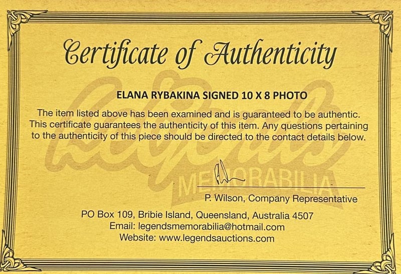 ELANA RYBAKINA SIGNED WMBLEDON PHOTOElana Rybakina Personally Signed 10 X 8 Photo From Her 2022 Wimbledon Victory. Elena Rybakina Is A Russian-Born Kazakhstani Professional Tennis Player. Rybakina Has Been Ranked As High As World No. 3 In Women'S Singles By The Wta. The Item Is Accompanied By A Certificate Of Authenticity.Condition: Good - Refer To Images584405+41