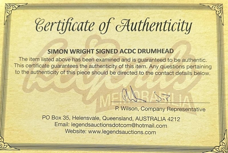 SIMON WRIGHT SIGNED AC/DC DRUMHEADA Ac/Dc Drumhead Personally Signed By Simon Wright. Simon Wright Is An English Drummer Best Known For His Work With Rock Bands Ac/Dc And Dio. The Item Is Accompanied By A Certificate Of Authenticity.Condition: Good - Refer To Images584405+46