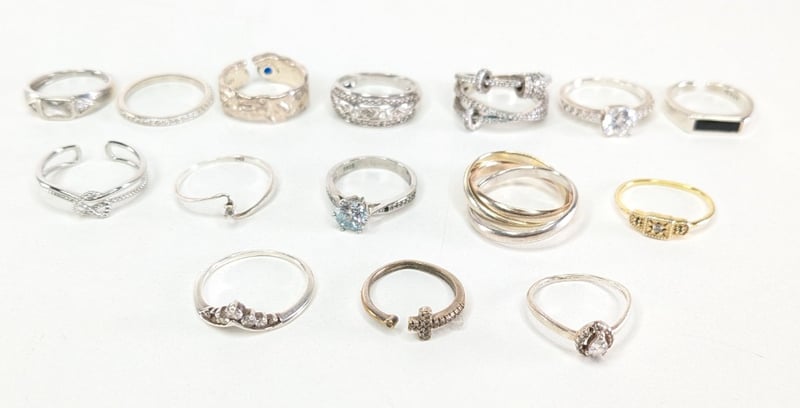 15 ASSORTED STERLING SILVER RINGS