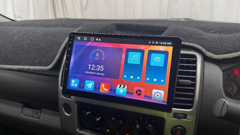 After market head unit Minor weathering to exterior trim, cosmetic wear consistent with age and usage, slight surface corrosion visible on exhaust components. Inspection recommended.