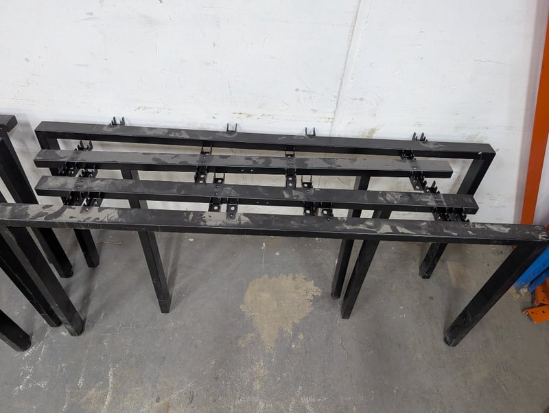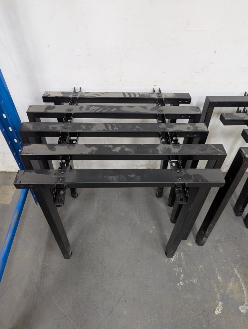 Assorted table legs, side brackets allowing for extended tables, various sizes