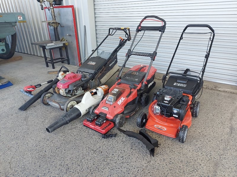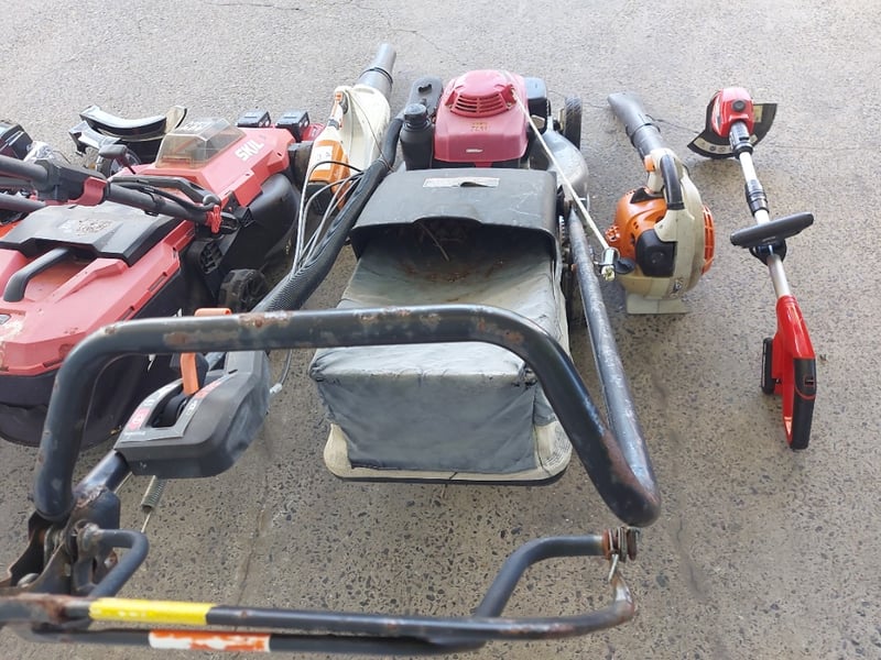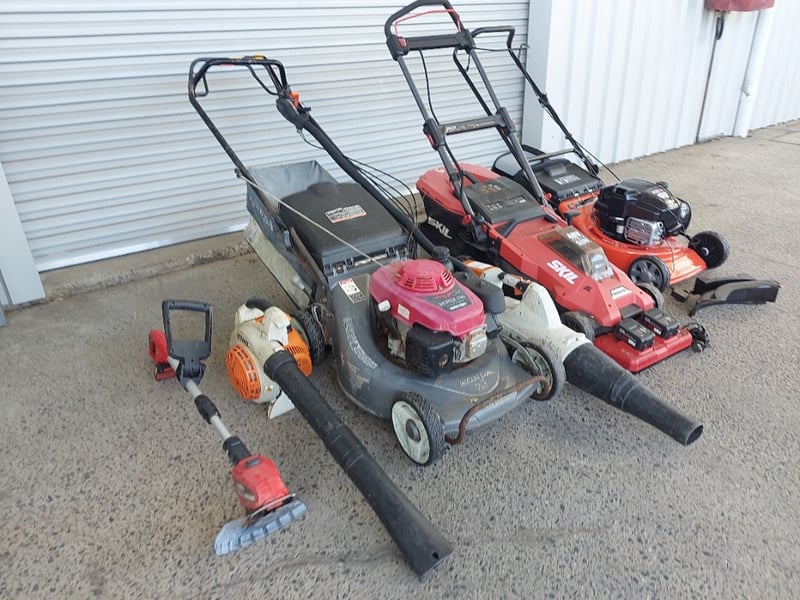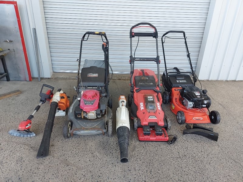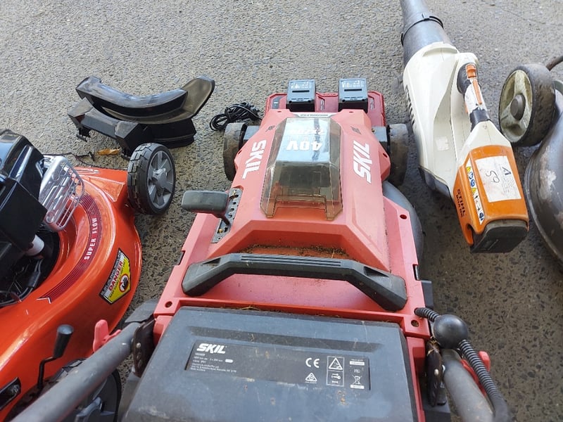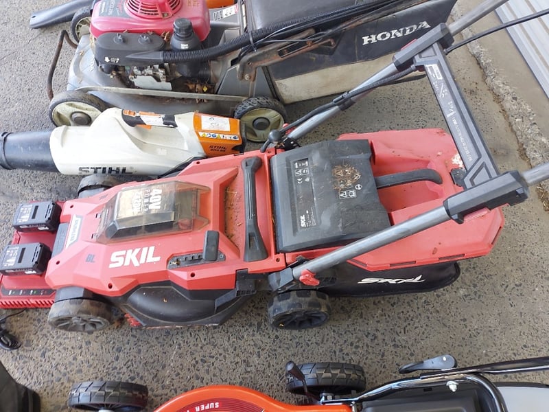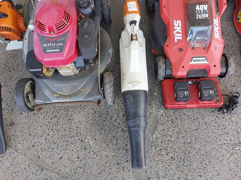 Assorted Lot Includes, Electric And Fuel Lawnmowers, Blowers, Wiper Snipper, SKL 40v Mower, Briggs & Stratton, 475ISI 140cc, Honda HRU216, Stihl BG86C, Stihl BGA 85, Oxito Power Model Pxclts-018Condition Unknown, Quantity 6