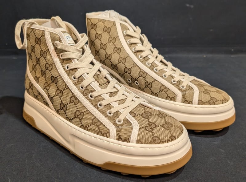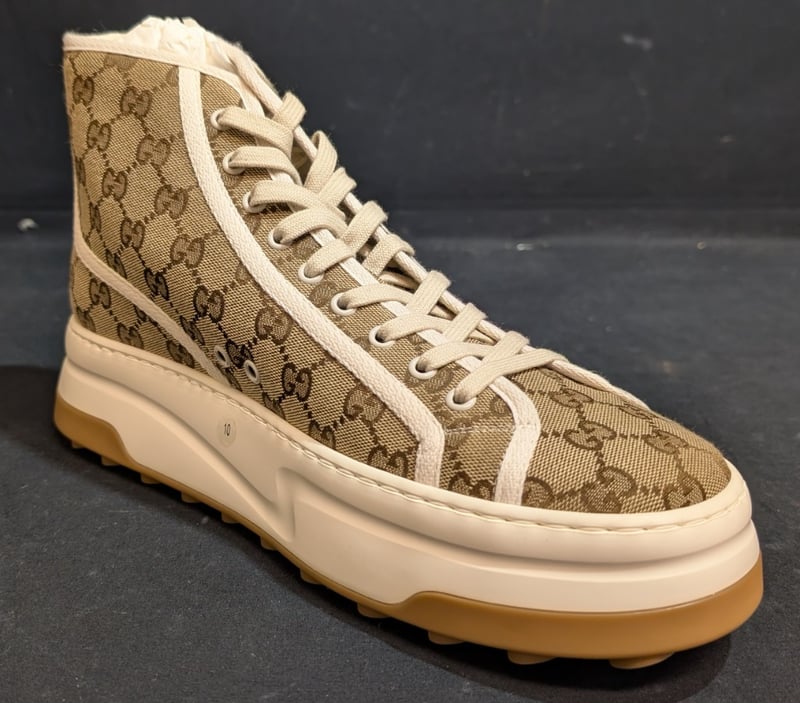 GUCCI TENNIS 1977 HIGH-TOP SNEAKERS MEN--CANVAS/RUBBER STYLE NUMBER: 879418055 SIZE 10