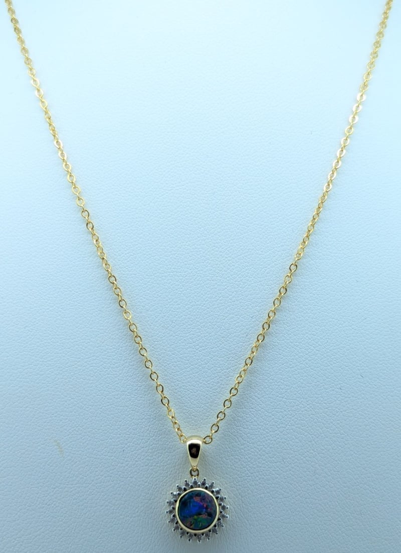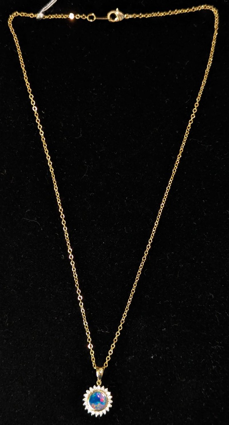 14K YELLOW GOLD OPAL AND DIAMOND PENDANT NECKLACE