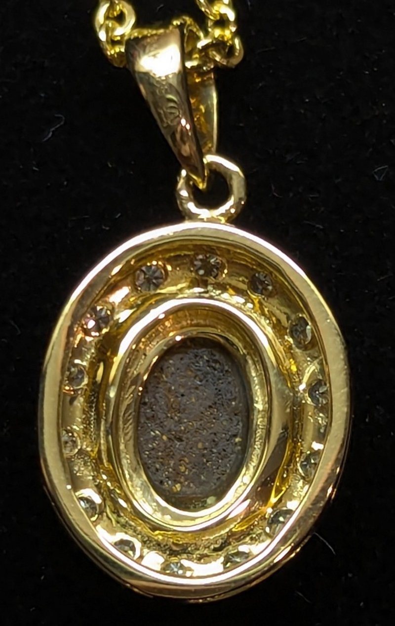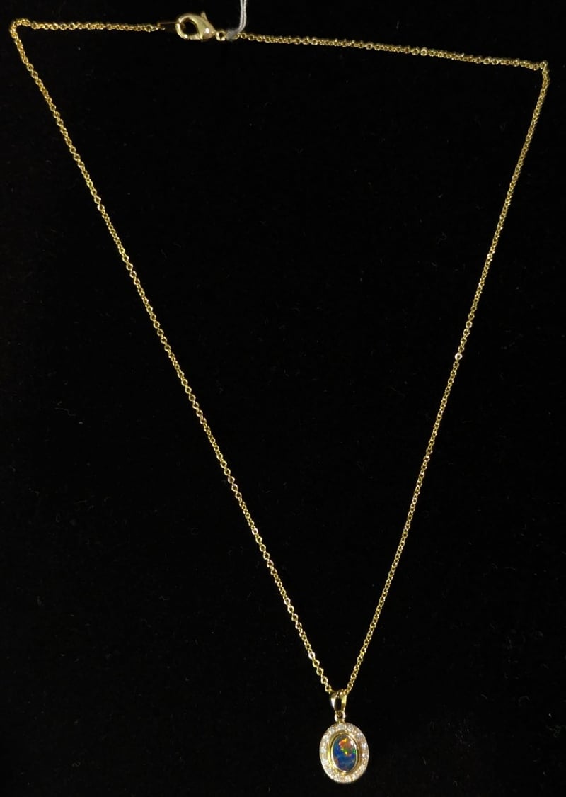 14K YELLOW GOLD OPAL AND DIAMOND PENDANT NECKLACE
