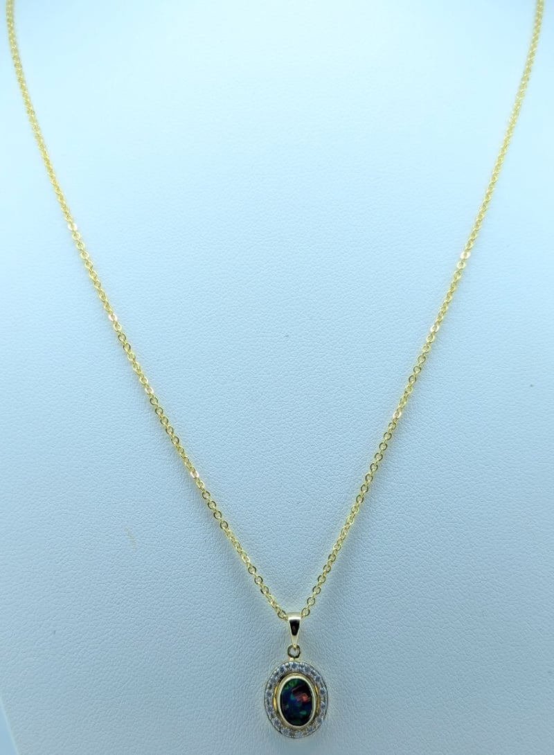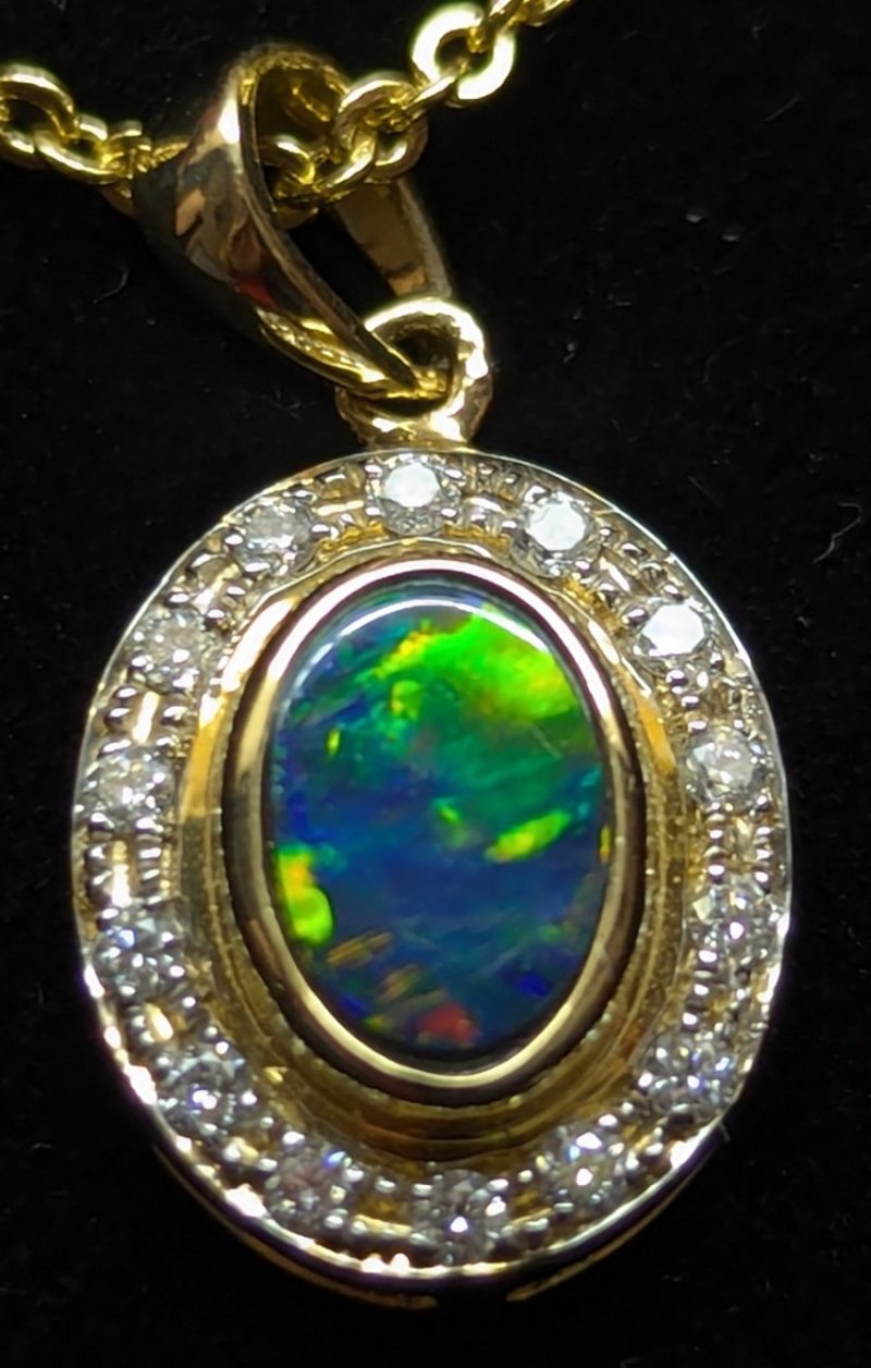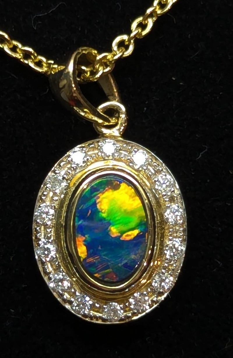 Pendant Features 0.53Ct Opal Doublet In Centre Setting,