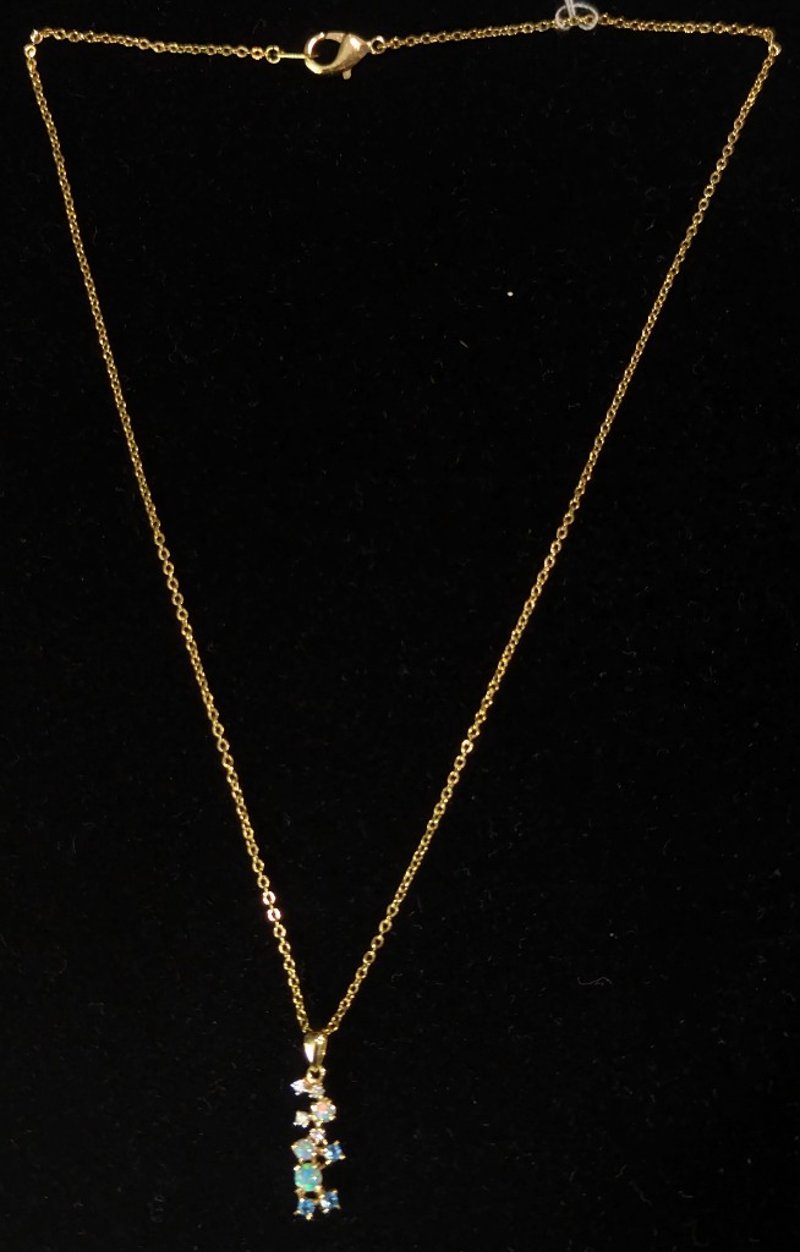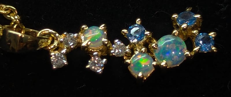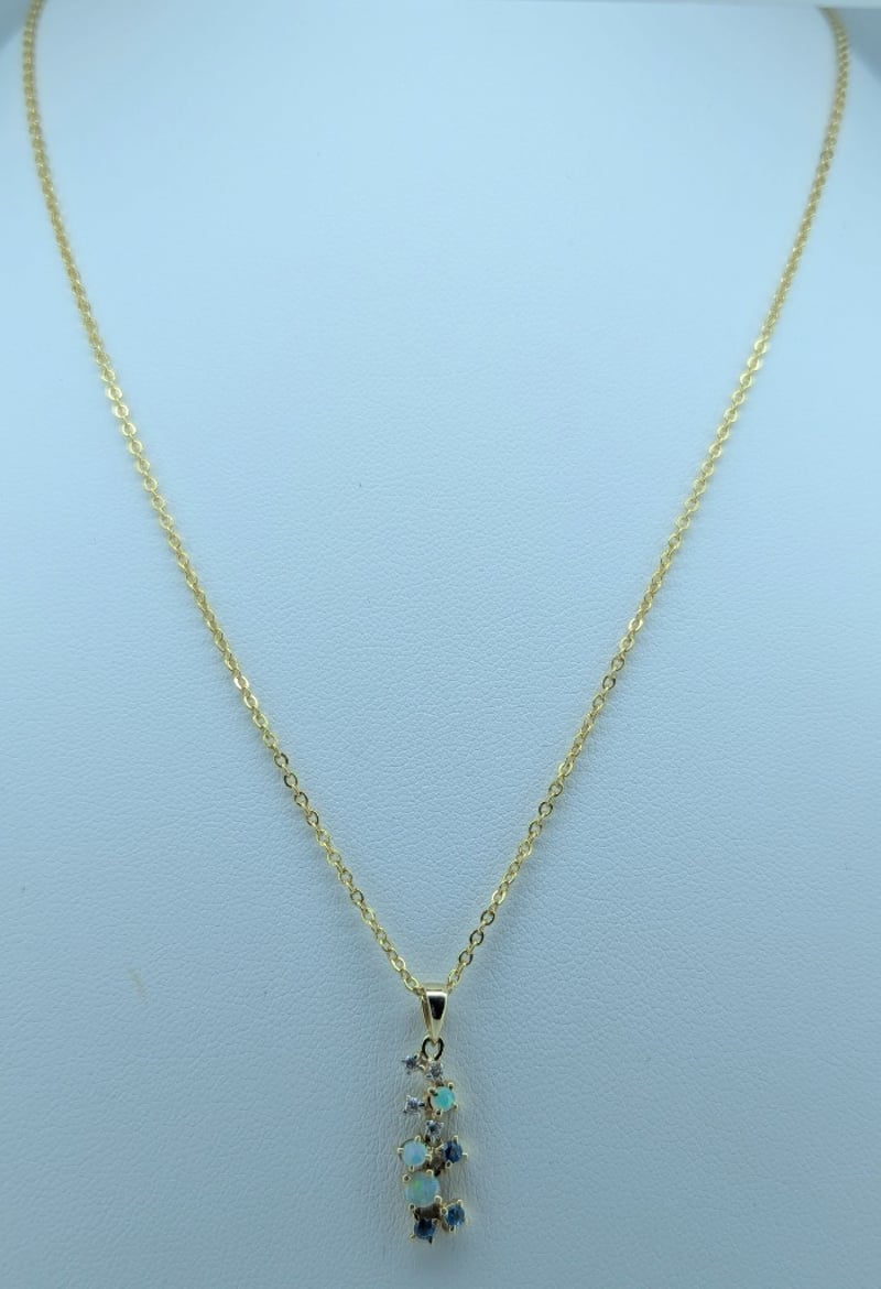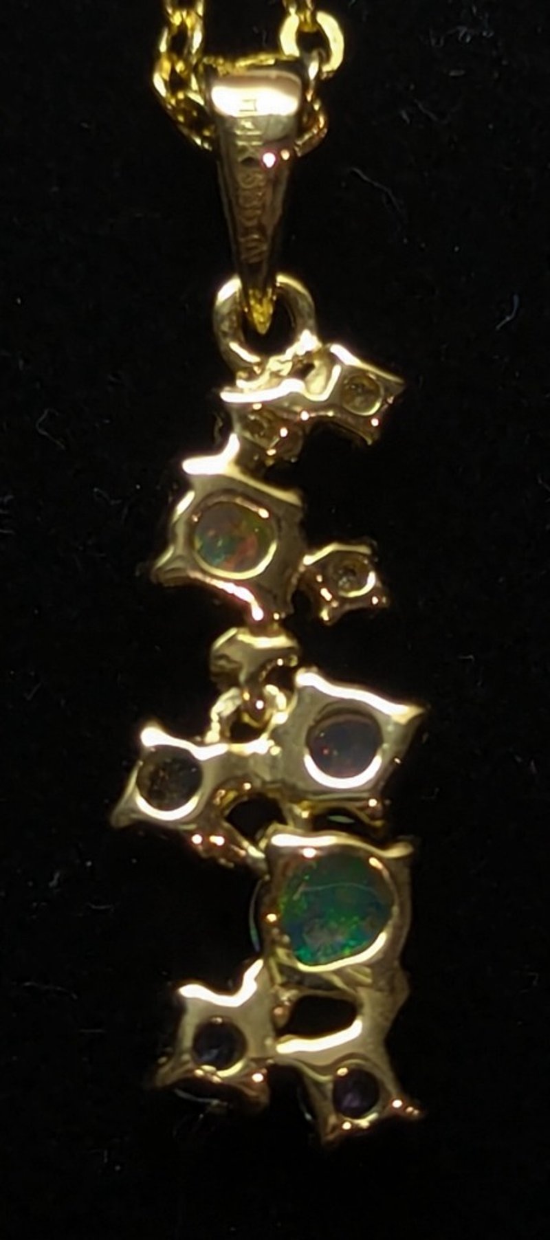 14K YELLOW GOLD OPAL, DIAMOND AND TOPAZ PENDANT NECKLACE