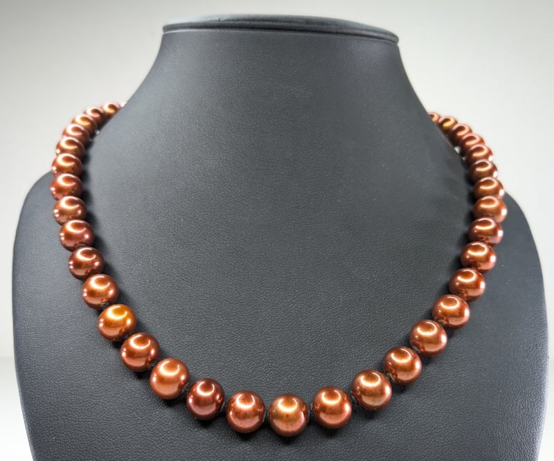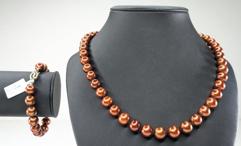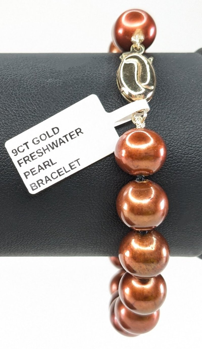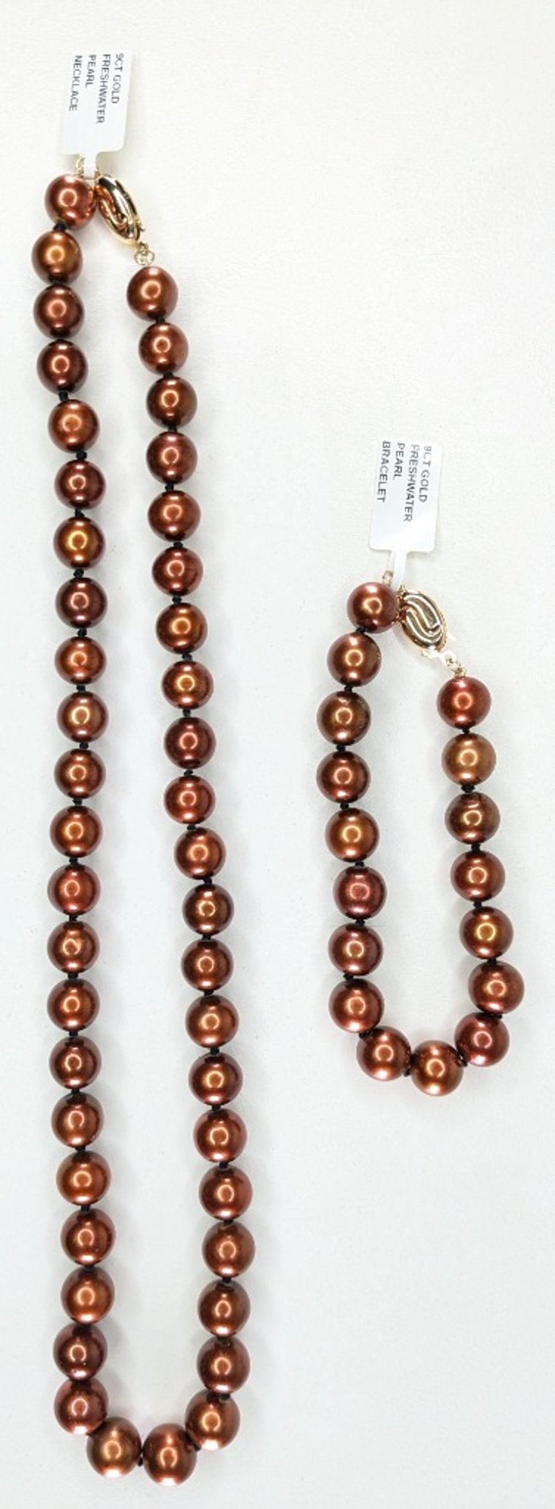 9CT YELLOW GOLD CHOCOLATE FRESHWATER PEARL NECKLACE AND BRACELET SET CROSSDOCKED 163041+23