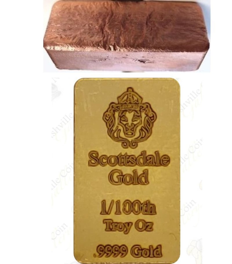 1/100 OUNCE SCOTTDALE GOLD BAR X 1 KILO OF COPPER BAR 311183+1