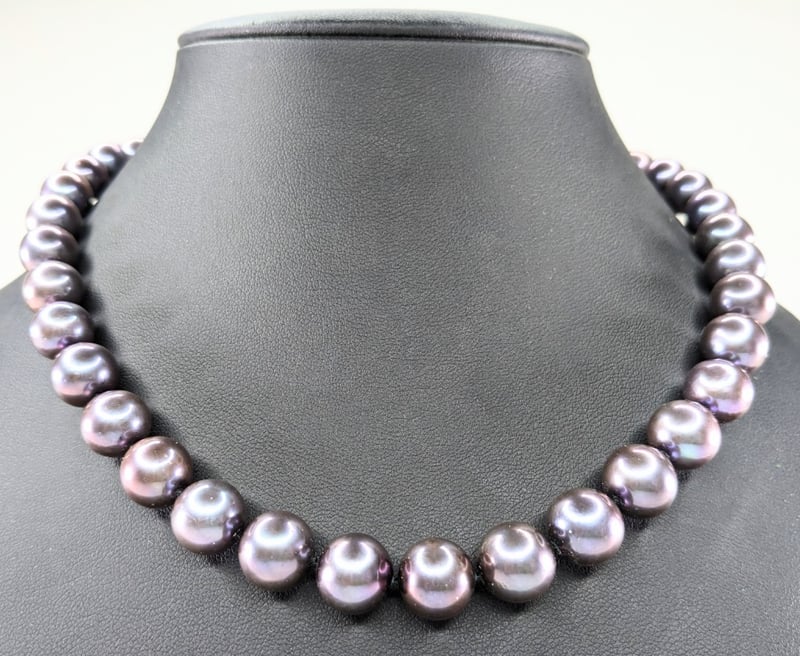 9CT YELLOW GOLD BLACK FRESHWATER PEARL NECKLACE 12MM Condition: Good - Refer To Images CROSSDOCL 163041+26