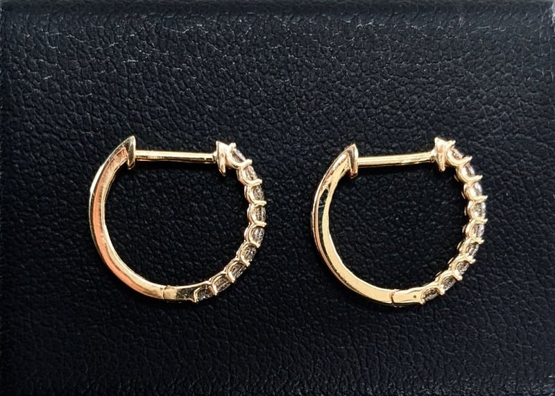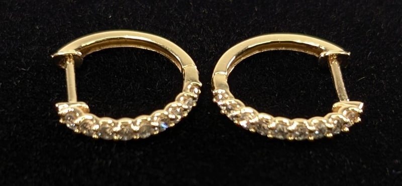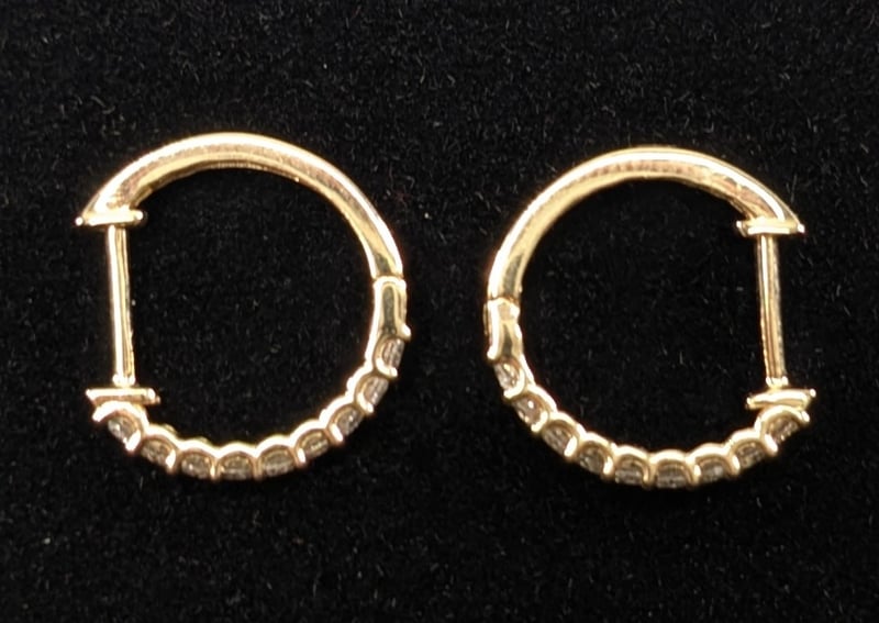 14CT YELLOW GOLD DIAMOND EARRING HOOPS. 14Ct Yellow Gold. 18 Claw Set Round Brilliant Cut Diamonds, 1-J, P2, 0.25Ct. Accompanied By Valuation Report No: 25753 Total Item Weight: 1.15g Condition: Good - Refer To Images This valuation has been conducted by an independent third-party professional. The valuation amount is an assessment by the issuing valuer and does not reflect the auction value of the item. Any inquiries regarding the valuation should be directed to the issuing valuer (refer to contact details on the certificate), as Lloyds Auctions has no affiliation or influence over the valuation, the valuer, or the stated amount. Insurance Replacement Valuation Amount: $1,800.00 CROSSDOCK 163041+13