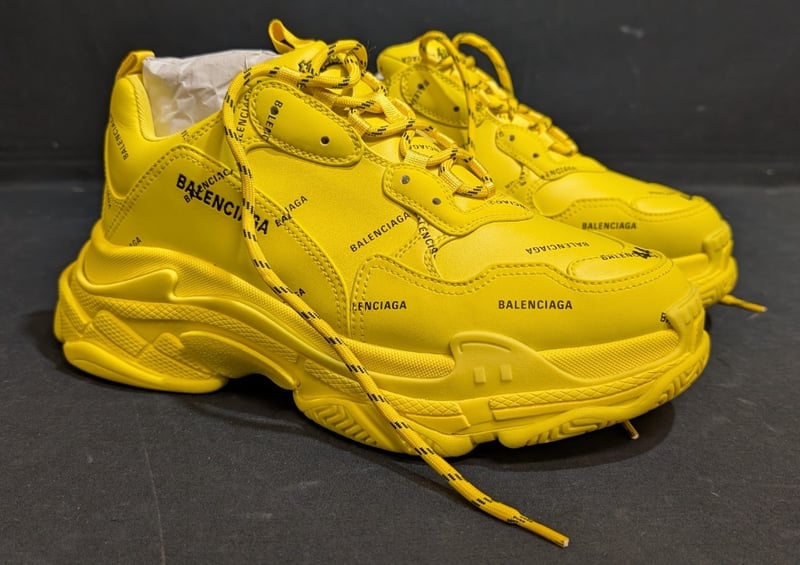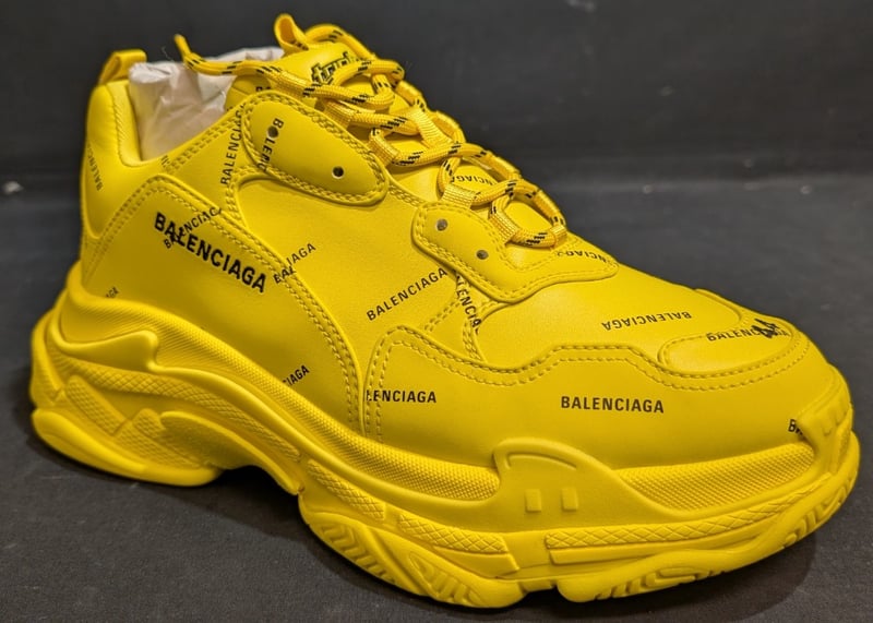 BALENCIA MEN'S TRIPLE S SNEAKER ALLOVER LOGO IN YELLOW