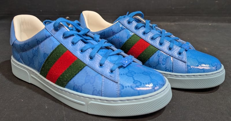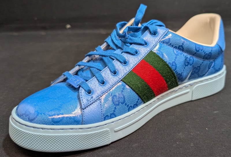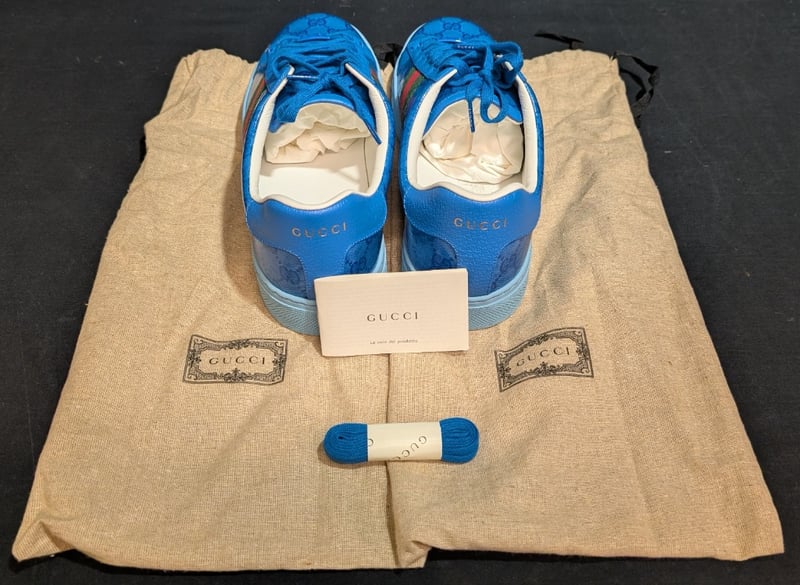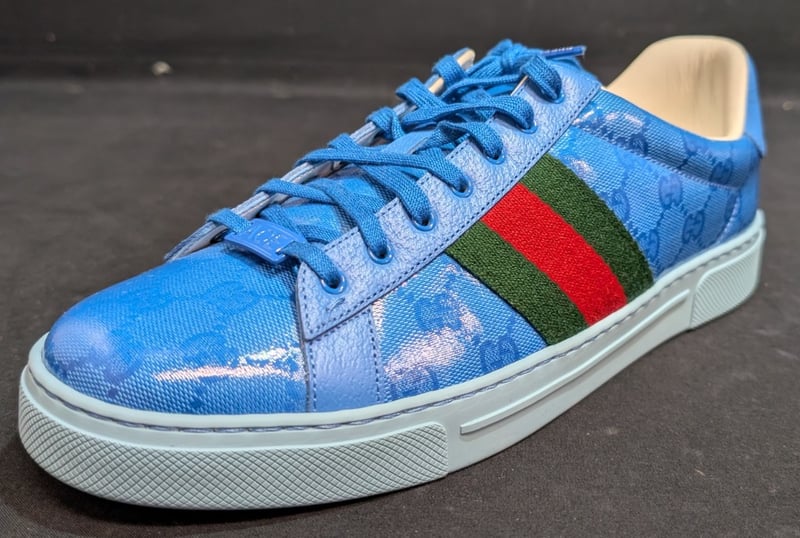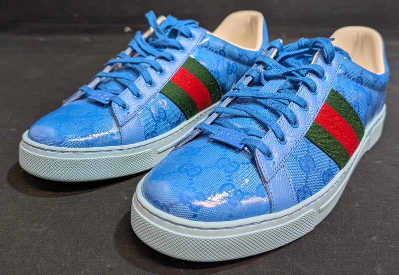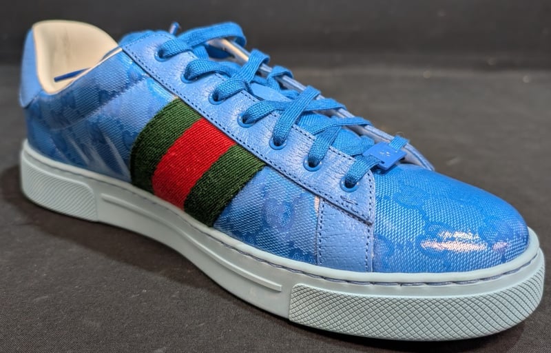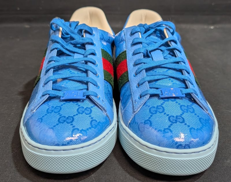 GUCCI MEN'S ACE GG CRYSTAL CANVAS TRAINER STYLE NUMBER 26270333 SIZE 10