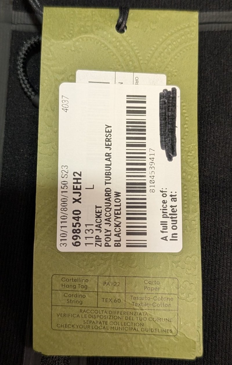 GUCCI LOGO TRACK JACKET 'BLACK' STYLE CODE: 698540XJEH2 SIZE: L