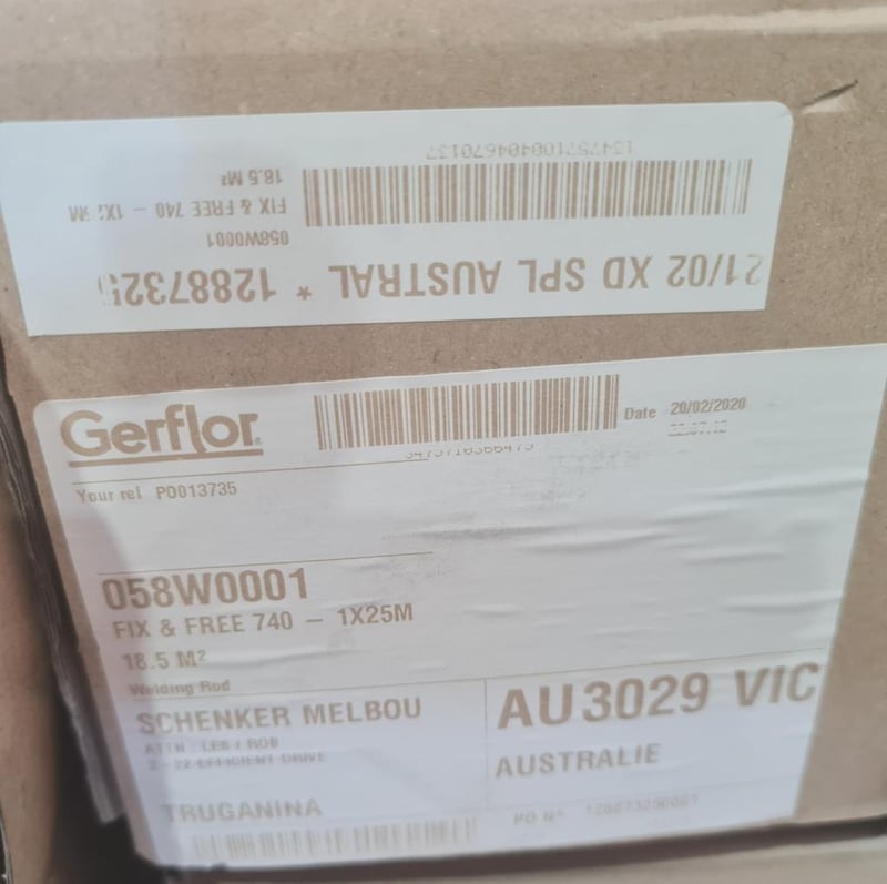 Gerflor Adhesive Tape fix & free. 740 x 740mm Wide and 25 ml long roll. 111 sqm 6 Boxes BID PER SQM, MUST TAKE 111 SQM