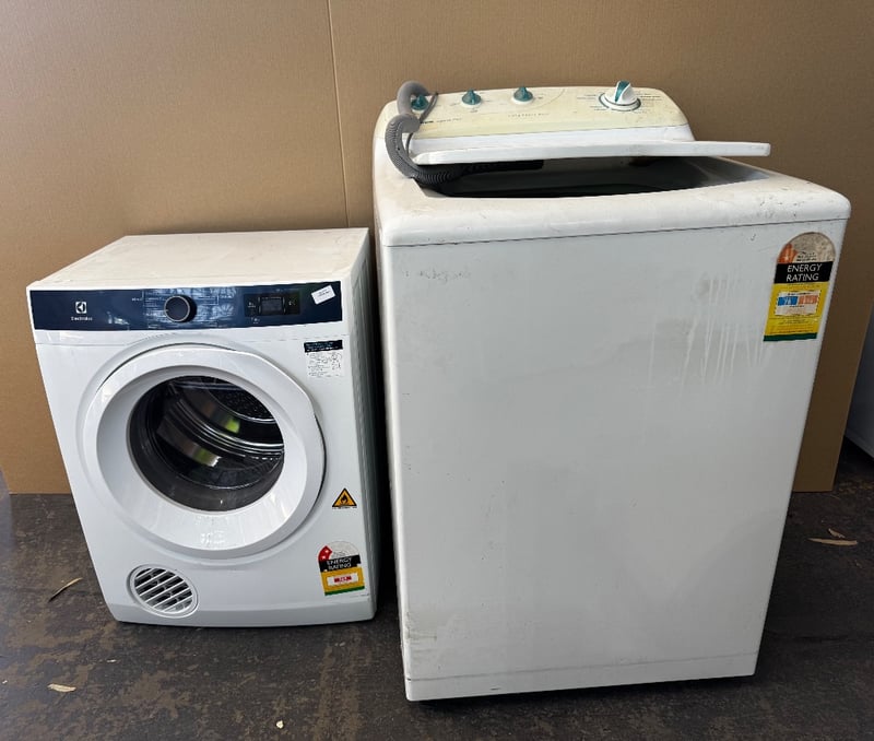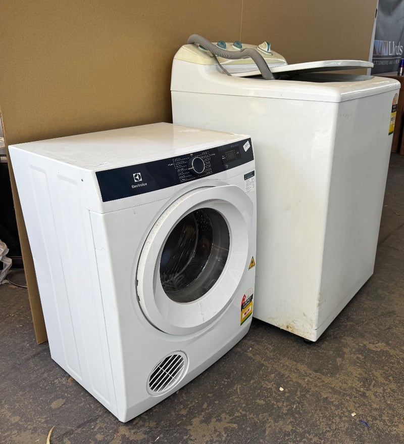 Appliances, washer and dryer including 6kg capacity, Electrolux dryer, model: EDV605HQWA and Simpson spirit 750, 7.5kg top loader washing machine Dimensions: W: 68cm D: 70cm H: 107cmW: 60cm D: 54cm H: 80cmSold as lot
