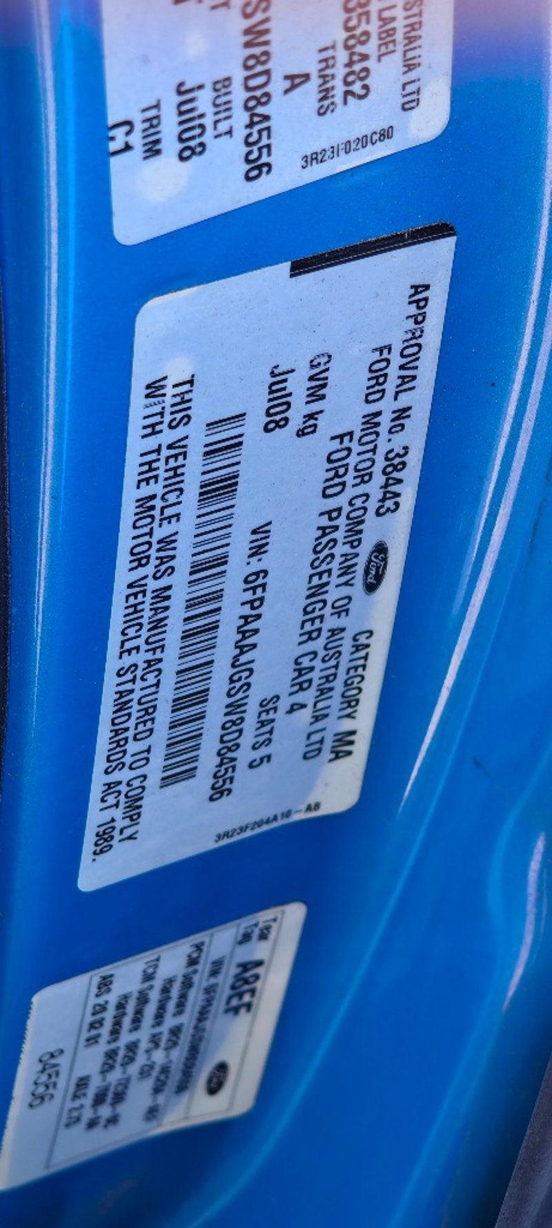 2008 Ford Falcon XR6Year: 2008Make: FordModel: FalconSeries: XR6Body: SEDAN Drive Type: Rear wheel driveEngine: 6 cylinder Transmission: AutoColour: BlueSeats: 5Odometer: Indicating Unknown KilometersVIN: 6FPAAAJGSW8D84556Eng: JGSW8D84556Damage: scratches to the front bumper of vehicle, as well as large dent on the left side of the car. Please refer to images. Inspection recommended Specifications: 1 key, tires inflated (as of current time of listing), no battery installed, vehicle operational unknown, odometer unknown. Inspection recommendedKey Number# PT48