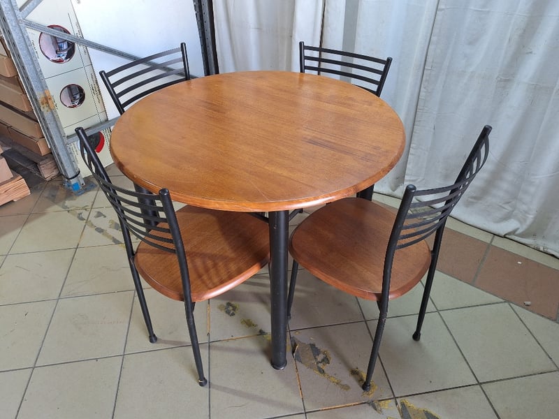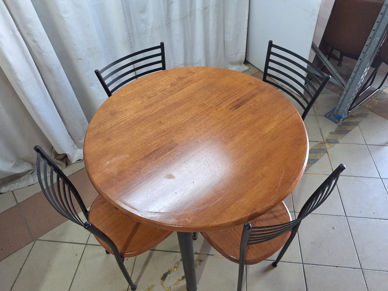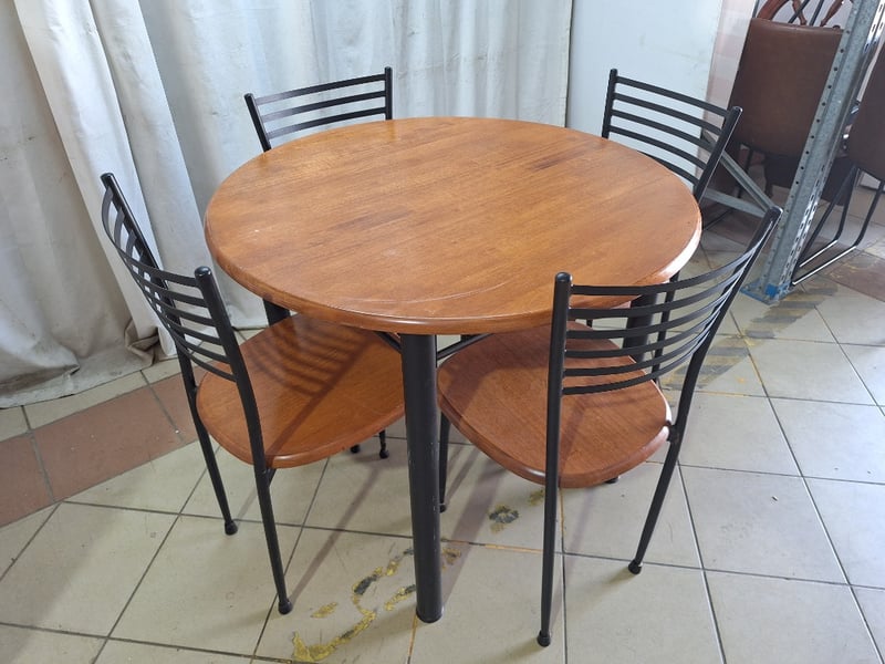 4 Seater Dining Table, Timber & Metal Style, Brown FinishDimensions Table H:75cm W:90cm D:90cm