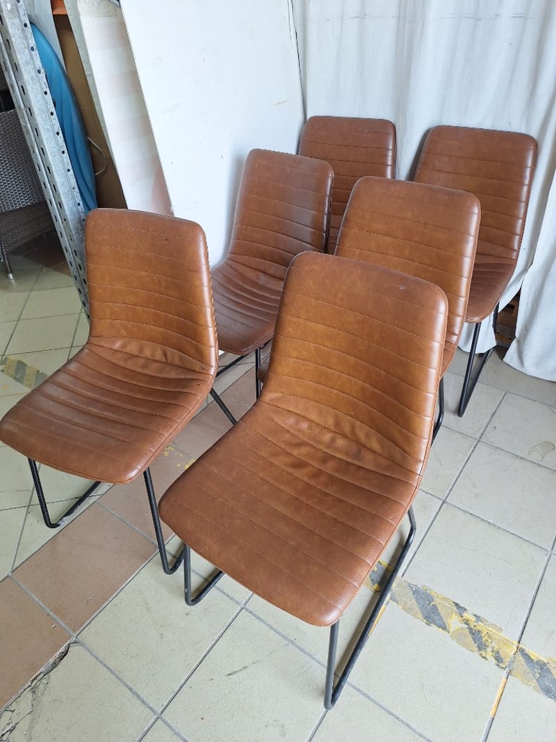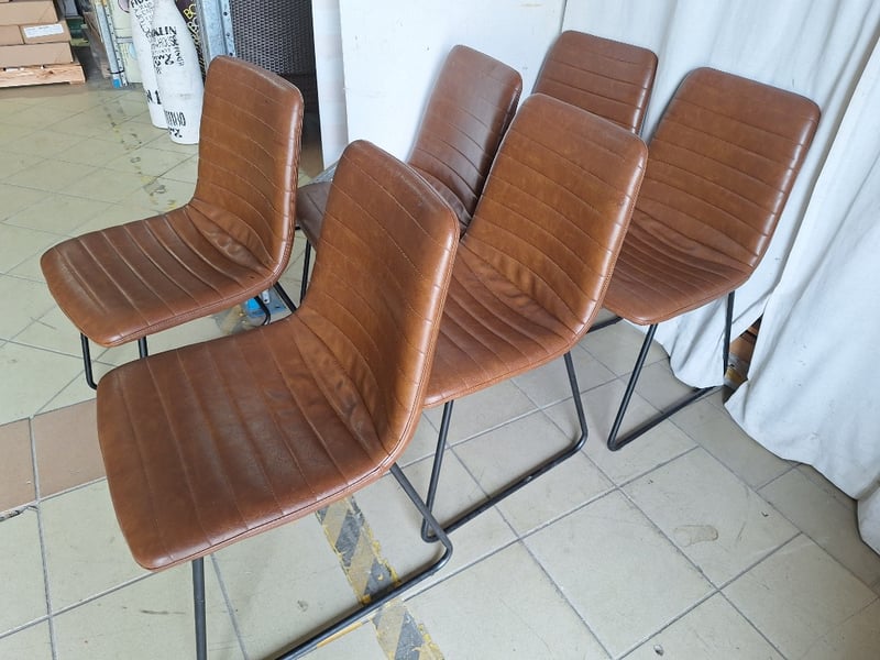 Set Of 6 Dining Chairs, Leather Style, Brown & Black Finish