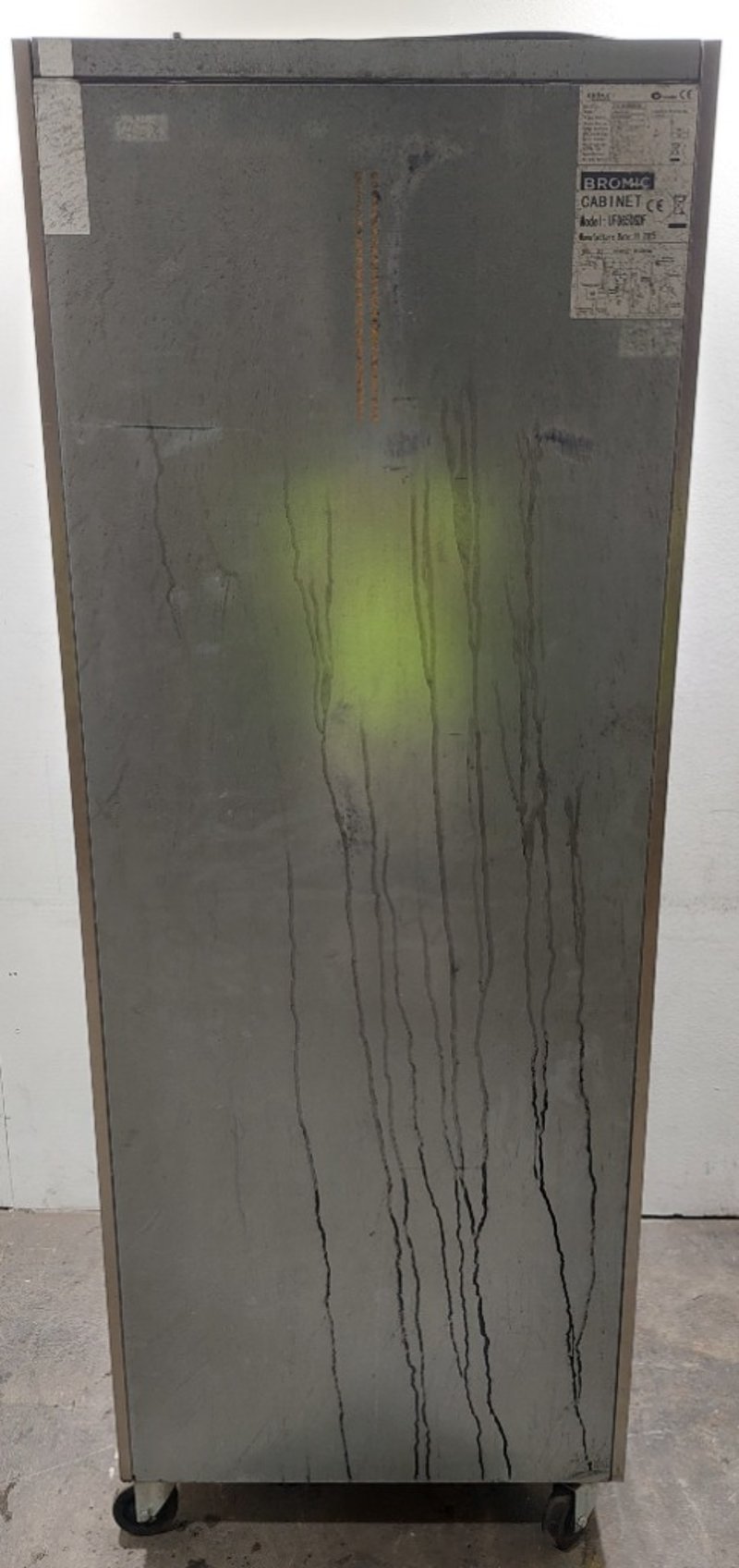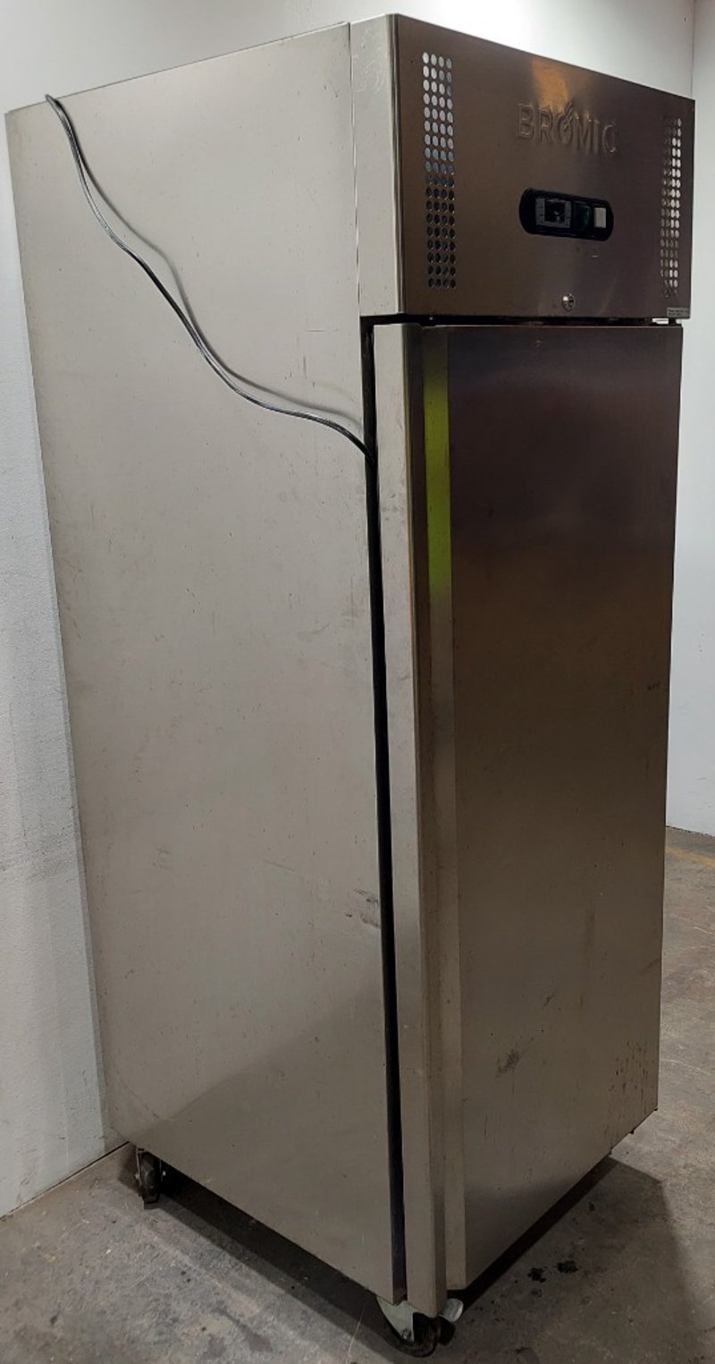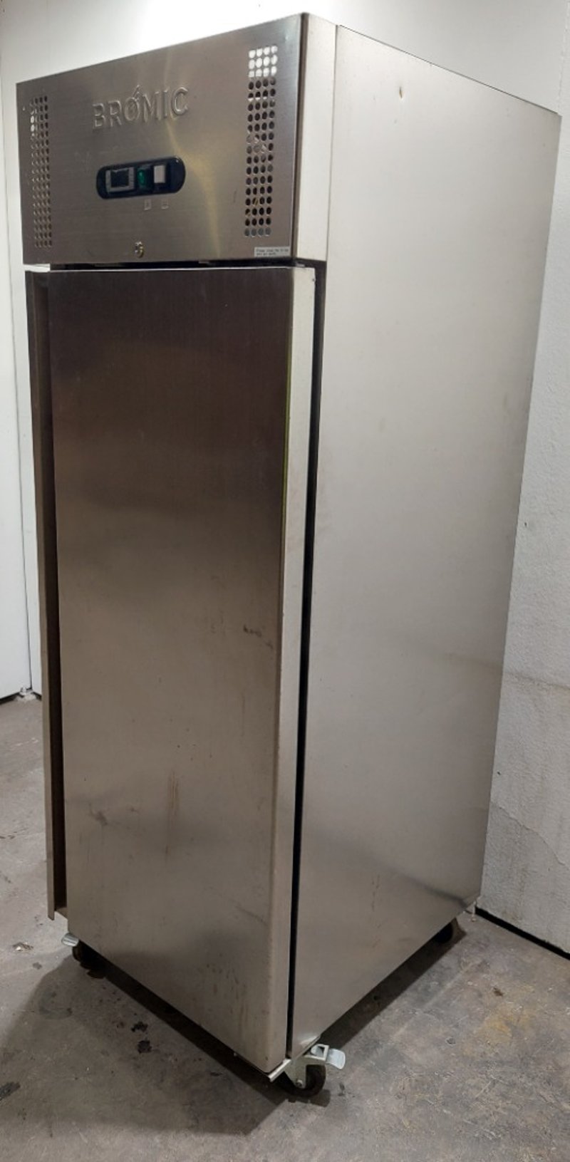 Bromic freezer, capacity 650L with 1 solid stainless steel door. Model number: GNG50BTSerial number: ST15113023GN65BT004Dims: 200cm x 84cm x 72cm Note: Signs of wear and tear, untested.