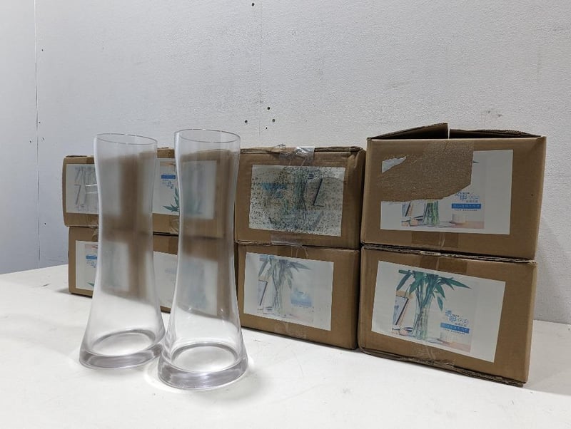 Flower Glass Vases, Qty x 8 Boxes, 2 Vase per box Bid as lot
